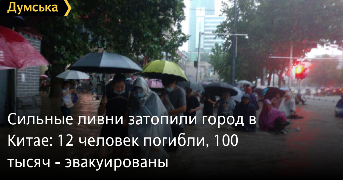 Сильные ливни затопили город в Китае: 12 человек погибли, 100 тысяч — эвакуированыВ китайском городе Чжэнчжоу, в провинции Хэнань, из-за сильных ливней погибли 12 человек, а еще 100 тысяч были эвакуированы. Об этом сообщает телеканал CGTN. Отмечается, что ливни, которые накрыли провинцию 20 июля, являются самыми сильными за всю историю наблюдений. Спасательная операция продолжается до сих пор. Пожарным удалось спасли более 150 детей и учителей, оказавшихся в детском саду во время сильного наводнения. Власти направили в зону бедствия дополнительные силы — более шести тысяч пожарных и военнослужащих. В результате наводнения оказалось затоплено метро, в результате чего погибли 12 пассажиров, а еще пятеро — получили ранения. После того как была обесточена ветка метро, администрация метрополитена начала эвакуацию. Вывести из тоннеля удалось около 500 человек. За последние сутки в Чжэнчжоу выпало от 250 до 329 мм осадков, тогда как в провинции — от 50 до 90 мм. Эксперты прогнозируют, что в течение среды выпадет еще около 260 мм осадков.