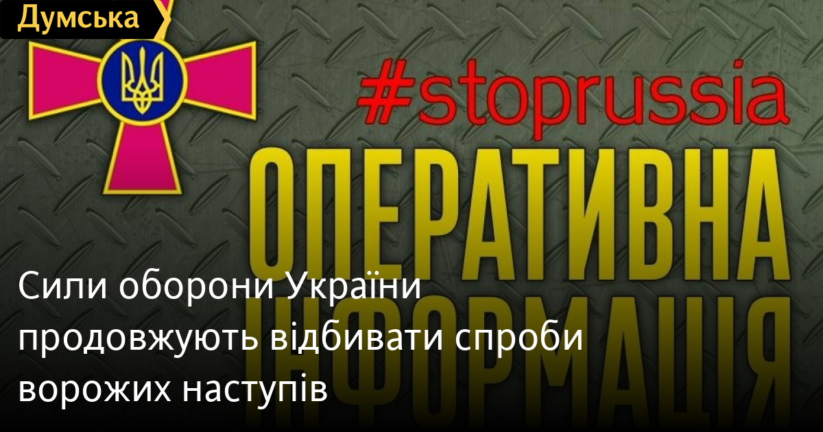 Сили оборони України продовжують відбивати спроби ворожих наступівОкупанти ще сподіваються проломити оборону українських військ на різних ділянках фронту. Спроби їх наступів успішно відбивають Сили оборони України. За даними Генерального штабу Збройних сил України, у Харківській області окупанти намагаються просунутися в районі Леб'яжого та Базаліївки. Бої у цьому районі продовжуються. У районі Слов'янська противник намагався наступати у районі Богородичного, успіху не мав і відійшов. У Мазанівки та Новодмитрівки бої продовжуються. На краматорському напрямі рашисти вели наступ у районі Спірного. Нічого не вийшло, вони зазнали втрат і відійшли. На бахмутському напрямку вороги штурмували Залізне, Шуми та Зайцеве. Безуспішно. У районі Соледара та Бахмутського продовжуються бої. На околицях Донецька окупанти штурмують Опитне. Бій продовжується. У Запорізькій області противник наступав у районі Шевченкового, отримав відсіч і відійшов. Тривають бої у районі Новомихайлівки. На південнобузькому напрямку рашисти зайняті зміцненням раніше захоплених рубежів. Уздовж лінії фронту продовжуються інтенсивні артилерійські обстріли. СМЕРТЬ РОСІЙСЬКИМ ОКУПАНТАМ! Помітили помилку? Виділяйте слова з помилкою та натискайте control-enter |