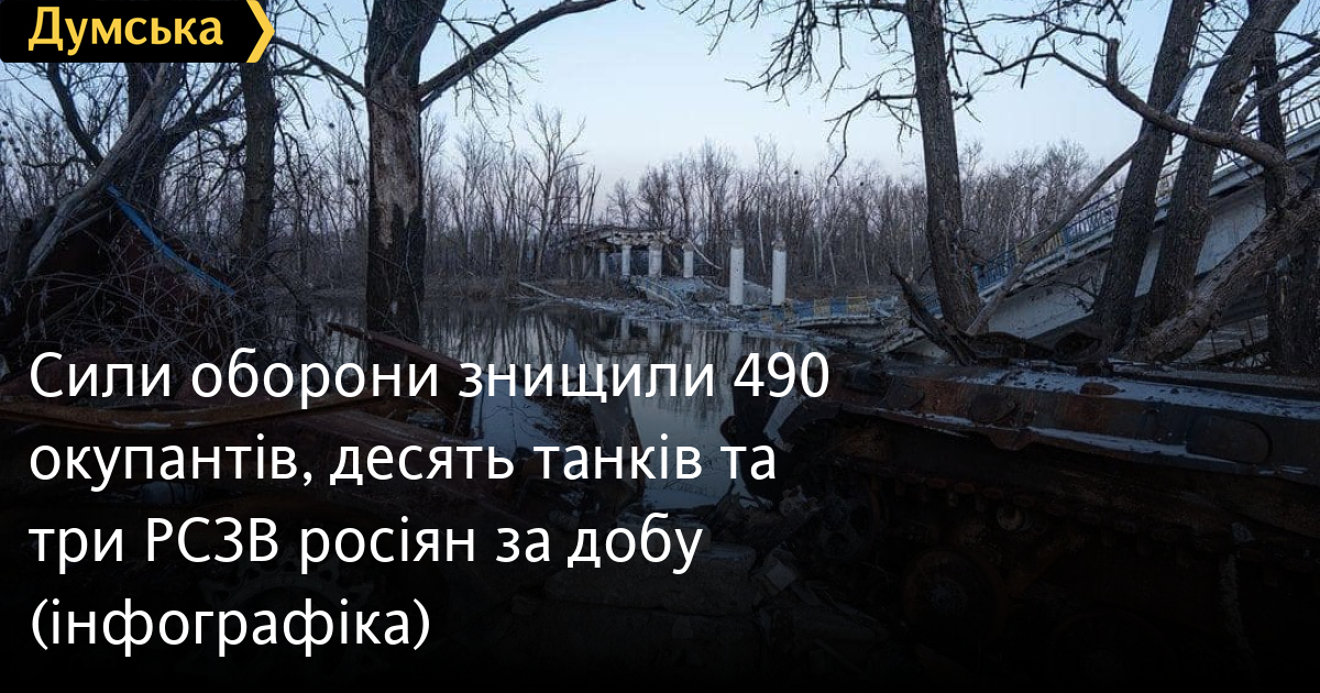Сили оборони знищили 490 окупантів, десять танків та три РСЗВ росіян за добу (інфографіка)490 окупантів, десять танків та три реактивні системи залпового вогню російських нацистів знищили за минулу добу Сили оборони України. В Генштабі Збройних сил повідомили, що противник втратив також п'ять бойових броньованих машин та стільки ж артилерійських систем, два дрони оперативно-тактичного рівня, дев'ять одиниць автомобільної техніки та автоцистерн та одну — спецтехніки. Всього з початку повномасштабної війни українські захисники знищили приблизно: особового складу ‒ близько 112960 (+490) осіб ліквідовано, танків ‒ 3094 (+10) од, бойових броньованих машин ‒ 6159 (+5) од, артилерійських систем – 2078 (+5) од, РСЗВ – 437 (+3) од, засоби ППО ‒ 217 (+0) од, літаків – 285 (+0) од, гелікоптерів – 275 (+0) од, БПЛА оперативно-тактичного рівня – 1862 (+2), крилаті ракети ‒ 723 (+0), кораблі /катери ‒ 17 (+0) од, автомобільної техніки та автоцистерн – 4826 (+9) од, спеціальна техніка ‒ 184 (+1). СМЕРТЬ РОСІЙСЬКИМ ОКУПАНТАМ! Помітили помилку? Виділяйте слова з помилкою та натискайте control-enter |