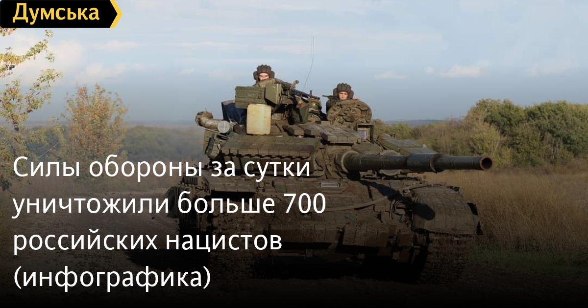Сили оборони за добу знищили понад 700 російських нацистів (інфографіка)Ворог продовжує зазнавати страшних втрат на українській землі. Як повідомляє Генштаб Збройних сил, за минулу добу українські захисники ліквідували приблизно 710 російських солдатів і офіцерів, десять танків, 14 бойових броньованих машин, 12 артсистем, гелікоптер, шість БПЛА оперативно-тактичного рівня, 17 одиниць автомобільної техніки та автоцистерн. Загалом із 24 лютого 2022 року окупанти втратили 79400 осіб, 2814 танків, 5696 ББМ, 1817 артсистем, 393 РСЗВ, 205 засобів ППО, 278 літаків, 261 гелікоптер, 1505 БПЛА, 399 крилатих ракет, 16 кораблів і катерів, 4259 одиниць автотехніки та автоцистерн, 159 одиниць спеціальної техніки. СМЕРТЬ РОСІЙСЬКИМ ОКУПАНТАМ! Помітили помилку? Виділяйте слова з помилкою та натискайте control-enter |