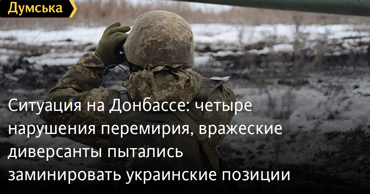 Ситуация на Донбассе: четыре нарушения перемирия, вражеские диверсанты пытались заминировать украинские позицииЗа прошедшие сутки, 29 ноября, на Донбассе вооруженные формирования Российской Федерации четырежды нарушили перемирие. По информации штаба ООС, режим прекращения огня противник нарушил в районе села Катериновка неподалеку от Марьинки, применив на этом участке гранатометы различных систем и минометы калибра 82 мм. Вблизи Попасной враг вел огонь из автоматического станкового гранатомета и стрелкового оружия и ручного противотанкового гранатомета. Возле Луганского подразделение Объединенных сил своевременно обнаружил выдвижение диверсионно-разведывательной группы противника. «Украинские защитники сорвали попытку диверсантов провести минирование позиций наших войск. После огневого контакта противник отошел», — говорят в штабе ООС. На пути отступления вражеской ДРГ военнослужащие подразделения обнаружили средства минирования российского производства, личные вещи диверсантов и другое военное снаряжение. На этом же участке украинские воины сбили вражеский БПЛА типа «Гранат», который входит в комплекс обеспечения действий артиллерии «Наводчик 2». Диверсанты использовали его для проведения разведки и корректировки своего подхода к нашим позициям. Боевых потерь и ранений среди личного состава Объединенных сил не было. С начала текущих суток на Донбассе без обстрелов. СМЕРТЬ РОССИЙСКИМ ОККУПАНТАМ! Заметили ошибку? Выделяйте слова с ошибкой и нажимайте control-enter |