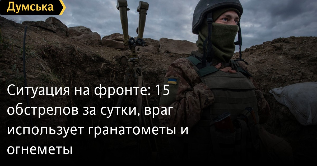 Ситуация на фронте: 15 обстрелов за сутки, враг использует гранатометы и огнеметыЗа прошедшие сутки в районе проведения операции Объединенных сил вооруженные формирования Российской Федерации 15 раз нарушали режим прекращения огня. Об этом сообщили в штабе ООС. Так, возле Новоселовки российские наемники открывали огонь из минометов 82 калибра, а в пригороде Водяного — противник дважды открывал огонь из минометов этого же калибра и гранатометов различных систем. В направлении Катериновки оккупанты обстреляли позиции украинских защитников из реактивных пехотных огнеметов, ручных противотанковых гранатометов и стрелкового оружия. Вблизи Новотошковского враг четыре раза обстреливал украинские позиции из гранатометов различных систем и стрелкового оружия. Дважды из крупнокалиберных пулеметов, автоматических станковых и станковых противотанковых гранатометов противник открывал огонь в районе Луганского. Вблизи Песков в сторону позиций наших защитников российские оккупанты совершили обстрел из ручных противотанковых гранатометов, а возле Троицкого — еще и из крупнокалиберных пулеметов. В районе Старогнатовки противник дважды вел огонь из автоматических станковых гранатометов, а у Причепиловки — еще и из крупнокалиберных пулеметов, стрелкового оружия, ручных противотанковых и подствольных гранатометов. За минувшие сутки боевых потерь среди украинских воинов нет. По состоянию на 7:00 утра 17 мая со стороны российско-оккупационных войск зафиксировано одно нарушение режима прекращения огня — оккупанты вели огонь неподалеку Причепиловки из станковых противотанковых, автоматических станковых гранатометов, крупнокалиберных пулеметов и стрелкового оружия. СМЕРТЬ РОССИЙСКИМ ОККУПАНТАМ! Заметили ошибку? Выделяйте слова с ошибкой и нажимайте control-enter |
