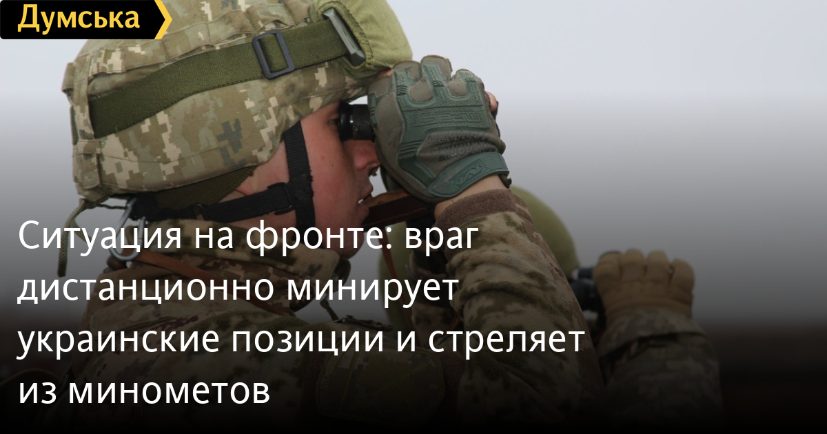 Ситуация на фронте: враг дистанционно минирует украинские позиции и стреляет из минометовЗа минувшие сутки, 15 апреля, в зоне проведения Операции объединенных сил зафиксировали семь нарушений со стороны вооруженных формирований РФ. По сообщению штаба ООС, в пригороде Майорска российско-оккупационные войска открывали огонь из запрещенных Минскими договоренностями минометов 82 калибра и крупнокалиберных пулеметов. Там же был зафиксирован пролет вражеских беспилотников с пересечением линии разграничения. Вблизи Новгородского враг совершил дистанционное минирование из ручных противотанковых гранатометов противопехотными осколочными минами ПОМ-2. Неподалеку Новозвановки противник совершил обстрел в сторону позиций наших защитников из гранатометов различных систем, а у поселков Зайцево и Пески — из стрелкового оружия. Потерь среди украинских воинов нет. СМЕРТЬ РОССИЙСКИМ ОККУПАНТАМ! Заметили ошибку? Выделяйте слова с ошибкой и нажимайте control-enter |