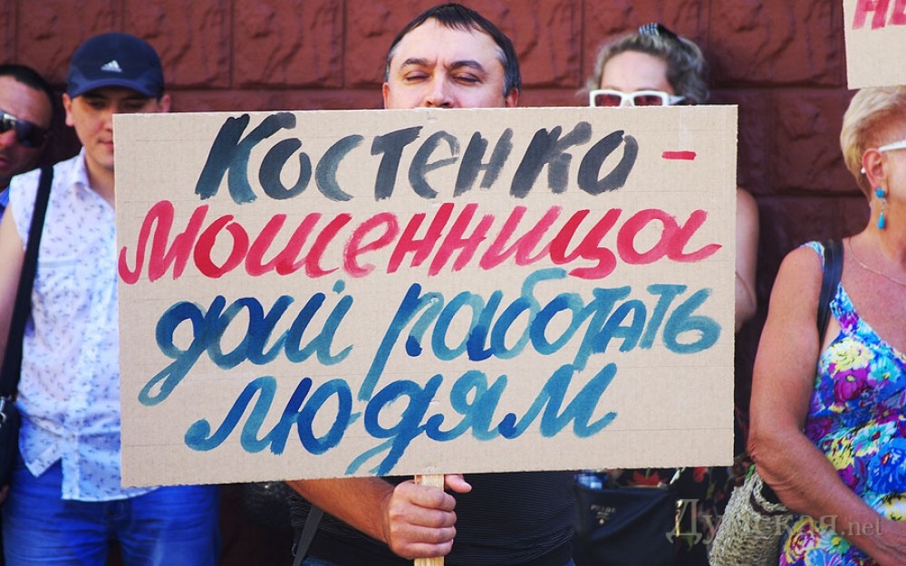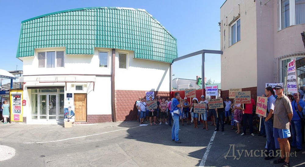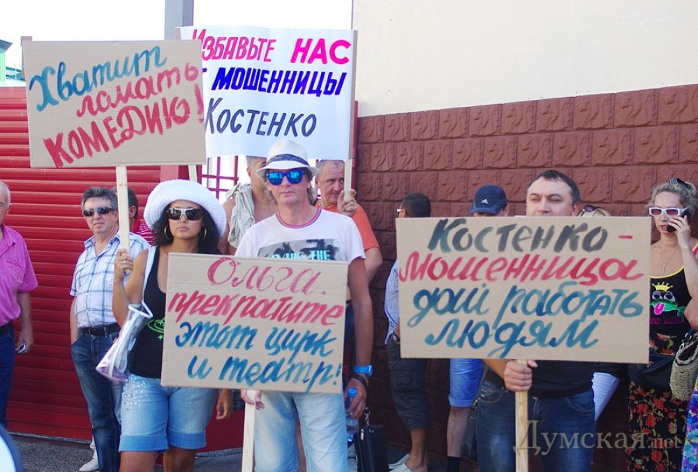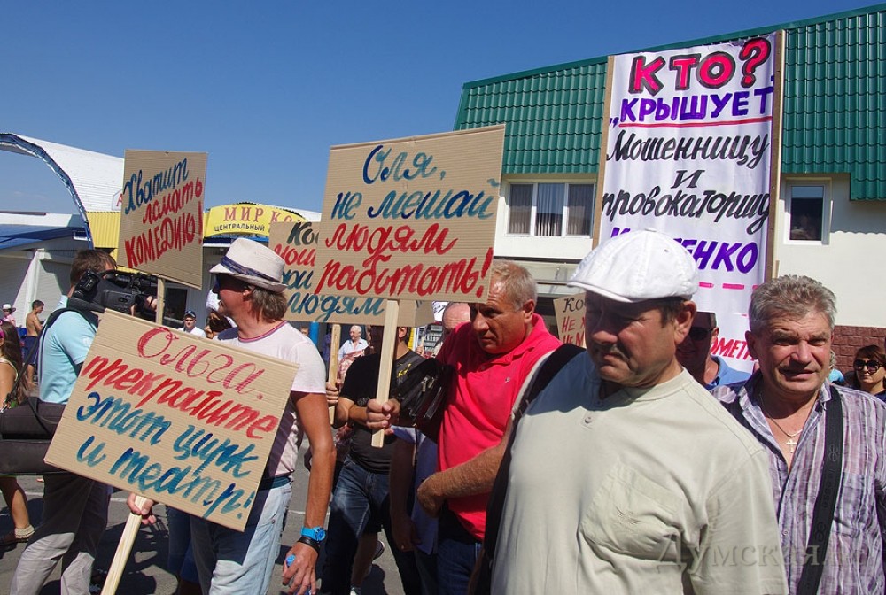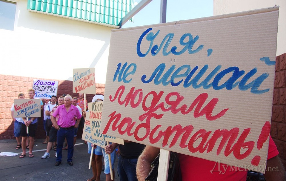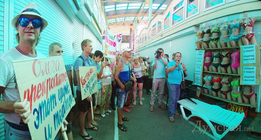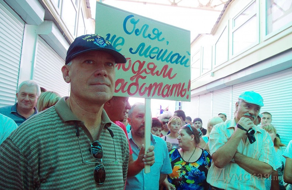 Предприниматели «Седьмого километра» пикетировали контейнер, в котором заперлась их коллегаНеобычный митинг прошел на промтоварном рынке «Седьмой километр» 20 августа. Предприниматели выступили против другого предпринимателя, взявшегося их якобы защищать. Вопреки бытующему мнению, протестующие собрались не у стен административного здания или на площади, а возле одной из торговых точек. Как передает корреспондент «Думской», внутри этого роллета заперлась известная активистка Ольга Костенко, а протестующие требовали, чтобы она покинула территорию рынка, заявляя, что ей здесь находиться запретил суд. Кроме того, торговцы в очередной раз обвинили Костенко в провокациях, мошенничестве и попытках навязать свою «крышу», что подтверждали множеством историй из жизни: «Буквально недавно был момент, который связан с Ольгой Костенко. Ситуация в том, что она предлагала предпринимателям, именно арендаторам торговых мест, передавать лично ей аренду, чтобы она передавала ее в дальнейшем, может быть, хозяевам, ту цену, которую она считает нужной. То есть, она предполагала своими действиями диктовать условия рынку, предпринимателям, владельцам торговых мест, которые исправно платят аренду в кассу, в администрацию и налоги», — говорит предприниматель Руслан. «Этот человек, Костенко, мешает взаимоотношениям между предпринимателями. Есть такое, что люди сдают свой контейнер, а торгуют в другом контейнере, так эта женщина вмешивается абсолютно везде. Ставит своих людей в контейнера, а потом говорит, что платить они не будут. Какое она имеет на это право, совершенно непонятно. Я знаю, что судом указано ей на то, чтоб она не переступала порог «7-го километра», но она до сих пор здесь. Мы просим избавить толчок от нее», — заявила участница митинга Марина. Люди возмущены тем, что Ольга Костенко действует якобы от лица предпринимателей, и даже нашли несколько объяснений ее поведению: «С одной стороны, это лже-общественный деятель, который таким образом пытается терроризировать рынок в лице его администрации и вымогать для себя какие-то преференции. И с другой стороны, этот человек работает в интересах каких-то конкурентов «7-го километра». Здесь есть мнение на эту тему, что человек работает четко на этих людей», — добавил предприниматель Сергей. «Я осуществляю предпринимательскую деятельность на «7-м» уже более двадцати лет. За это время случались абсолютно разные проблемные ситуации, от откровенных бандитских событий до сугубо политических коллизий, вроде нового налогового кодекса. Мы все здесь торгуем: купить подешевле, продать подороже – это принцип торговли. Когда кто-то один заработал, кто-то другой всегда потратился, в этой ситуации нет ни правых, ни виноватых. Но такого стиля работы, такого поведения и манер отношений среди рядовых предпринимателей и коллег — не было ни разу. И именно против такого поведения мы вышли на протест», — отметил предприниматель и глава профсоюза рынка Виктор Кудлай. В свою очередь представитель администрации рынка Ирина Ткач сообщила, что иннициативная группа предпринимателей заранее уведомила администрацию о митинге. «Согласно заявлению, в митинге принимало участие до двухсот человек. Присутствовала милиция, никаких столкновений не произошло. Что же касается Ольги Костенко, то у нас действительно есть 