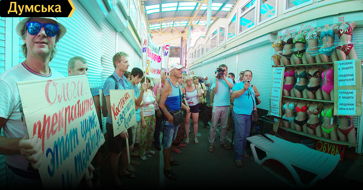 «Я осуществляю предпринимательскую деятельность на «7-м» уже более двадцати лет. За это время случались абсолютно разные проблемные ситуации, от откровенных бандитских событий до сугубо политических коллизий, вроде нового налогового кодекса. Мы все здесь торгуем: купить подешевле, продать подороже – это принцип торговли. Когда кто-то один заработал, кто-то другой всегда потратился, в этой ситуации нет ни правых, ни виноватых. Но такого стиля работы, такого поведения и манер отношений среди рядовых предпринимателей и коллег — не было ни разу. И именно против такого поведения мы вышли на протест», — отметил предприниматель и глава профсоюза рынка Виктор Кудлай.
