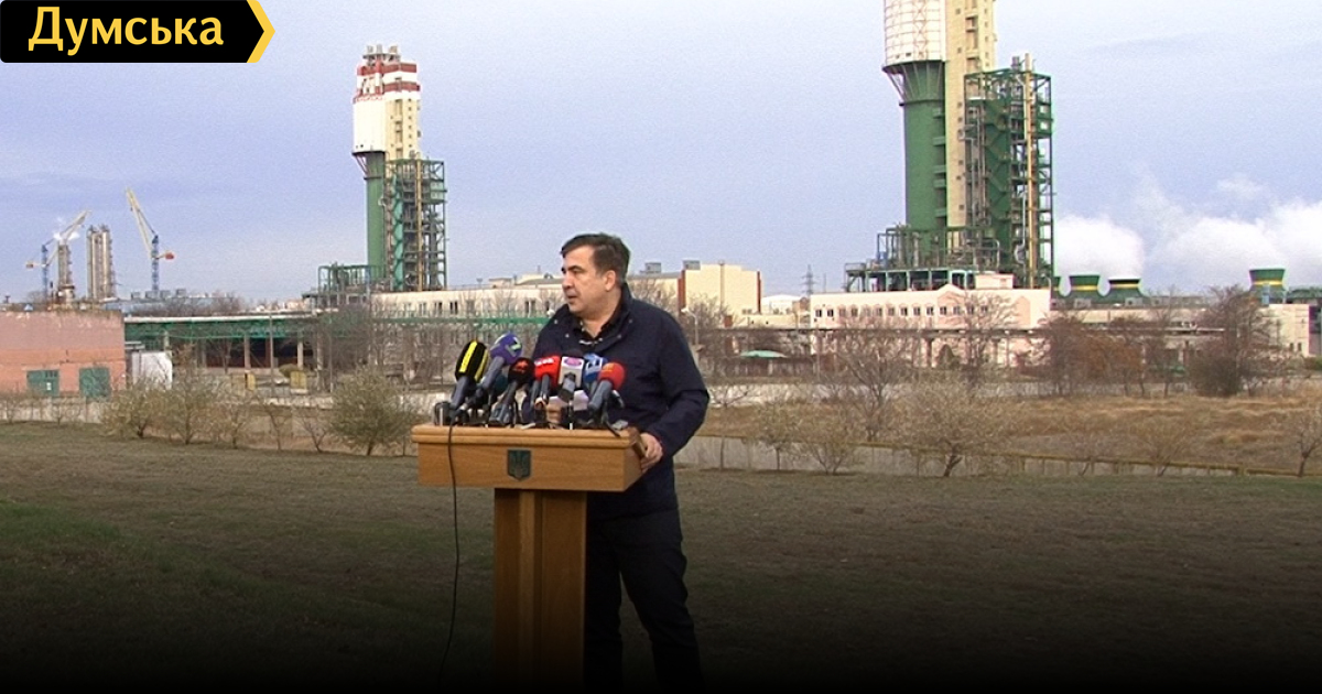 Губернатор Михаил Саакашвили сегодня встретился с журналистами на территории Одесского припортового завода.