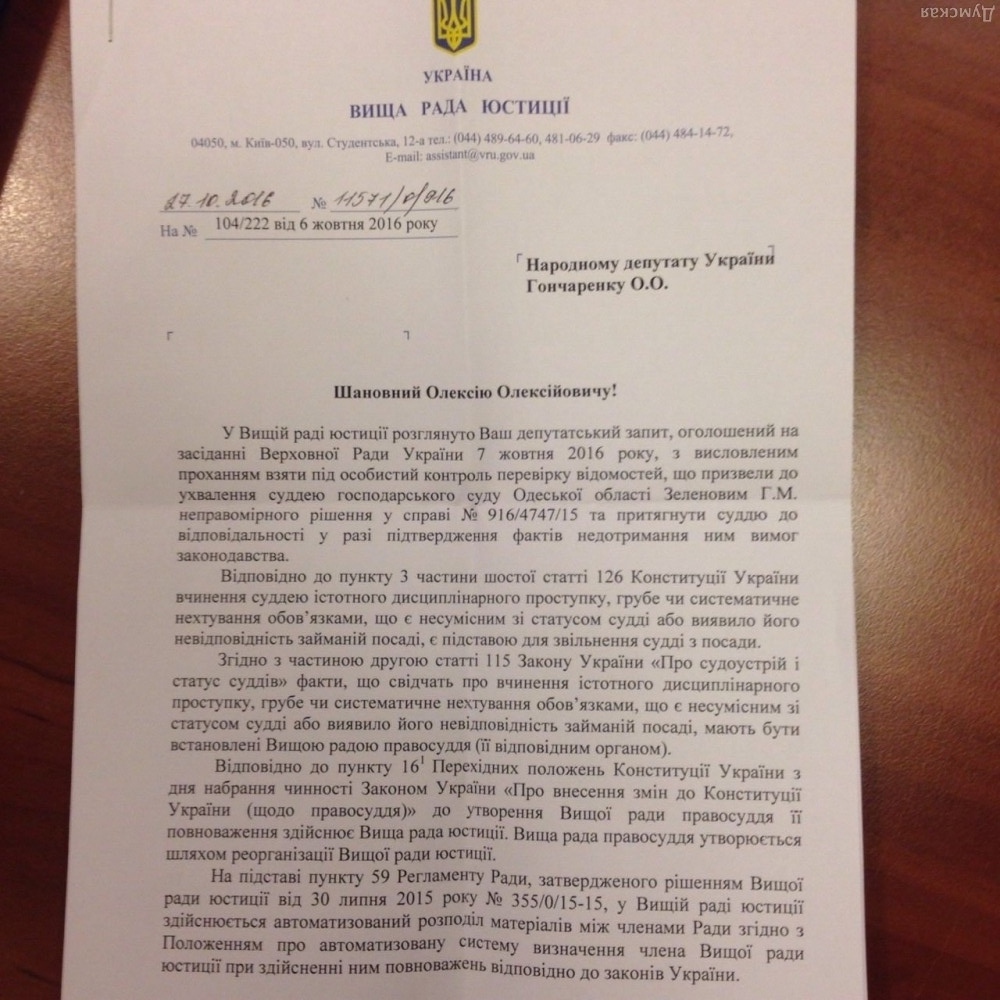 Скандальным судьей, из-за которого одесский НПЗ перешел под контроль Курченко, займется Высший совет юстицииДействия судьи Одесского хозяйственного суда Геннадия Зеленова, из-за скандального решения которого Одесский НПЗ фактически вернулся под контроль беглого олигарха Курченко, проверит Высший совет юстиции. Об этом сообщил народный депутат Алексей Гончаренко, который и подавал запрос в совет о неправомерных действиях одиозного судьи. А ранее, отметим, по запросу Гончаренко была проведена экспертиза долгов Одесского нефтеперерабатывающего завода, которые 18 августа судья Зеленов своим решением «присудил» в пользу компаний Курченко. Вывод эксперта подтвердил опасения нардепа — долг в 14,5 миллиардов гривен оказался фиктивным. В итоге суд, который рассматривал апелляцию 1 ноября, приобщил экспертное заключение к делу. «Переждав некоторое время, молодой олигарх Курченко решил взять реванш и подгрести под себя одно из крупнейших предприятий Одесчины, используя простой и понятный ему метод — путем подкупа судьи. Сегодня уже ясно, что дело, которое вел Зеленов в интересах Курченко, было шито белыми нитками. Но, имея весомые доказательства, я уверен, что нам удастся вырвать из рук мошенников Одесский НПЗ, а пример судьи Зеленова заставит задуматься любого продажного судью — ответ за свои поступки перед законом будет суров и неотвратим»,- прокомментировал ситуацию Алексей Гончаренко. Напомним, скандальное решение принял судья Зеленов 18 августа. Признание такой огромной задолженности, которая составляет около 95% от общей суммы, фактически означает, что предприятие снова оказывается под контролем у ставленника «семьи» Сергея Курченко. СМЕРТЬ РОСІЙСЬКИМ ОКУПАНТАМ! Помітили помилку? Виділяйте слова з помилкою та натискайте control-enter |