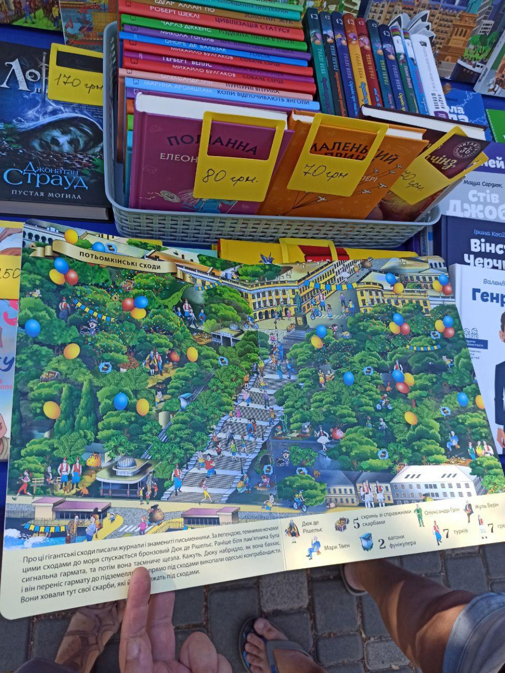 Сказки от Макаревича, «Легенды Одессы» и бизнес-литература: Одессу накрыла «Зеленая волна»Книжный фестиваль «Зеленая волна» уже в 24-й раз открылся в Одессе. В этом году участниками литературного форума стали около 70 книгоиздательств и книготорговых предприятий со всей Украины. Вот уже третий год, как мероприятие сменило свою традиционную локацию и теперь проходит не на главной улице города — Дерибасовской, а на центральной аллее парка Шевченко. Ведущие украинские издательства привезли на ярмарку печатную продукцию на любой вкус и карман. Здесь есть все – от религиозной и эзотерической литературы, до научной и узкоспециализированной. Среди бестселлеров книжной ярмарки – издание о творчестве кей-поп группы BTS, «Кровь-Святая» Владимира Шовкошитного об истории Украины, книги бизнес-серии для предпринимателей, «Бумажный зверинец» Лю Кена и др. По традиции, больше всего покупателей и просто зевак привлекают стенды с детской литературой – сказками, обучающими изданиями и раскрасками с наклейками. Мало того, что здесь можно найти редкие экземпляры, так и еще и приобрести их практически по закупочной цене. Большой популярностью пользуются красочные Виммельбухи, и особенно вышедшая недавно серия «Легенды Одессы». Стоимость такой книги – 170 грн. Привлекают внимание посетителей и сказки от фронтмена группы «Машина времени» Андрея Макаревича. Их можно приобрести как в украинской, так и в русской версии за 100 грн. Помимо книг, на ярмарке можно найти и другие интересные товары: открытки, значки с провокативными надписями, эко-сумки с авторской росписью, хенд-мейд украшения и многое другое. Для желающих сэкономить на ярмарке есть отдельные стенды с бракованными изданиями. Взяв книгу со слегка надорванной обложкой или примятыми уголками, можно сэкономить от 10 до 70% ее стоимости. Как обычно, в рамках форума проходят презентации книг, встречи с авторами, мастер-классы, конкурсы, поэтические чтения и концерты. Стоит отметить, что в этом году книжный фестиваль проходит одновременно в двух форматах – оффлайн и онлайн. В удаленном режиме, в частности, пройдет встреча с известным сатириком Михаилом Жванецким, который сегодня вечером официально откроет книжный форум. «Зеленая волна» по праву заработала себе статус одного из самых любимых фестивалей одесситов. Здесь царит атмосфера, в которой мировая тенденция падения спроса на печатную литературу становится неактуальной, а фраза о том, что украинцы были когда-то самой читающей нацией, вновь обретает смысл. И вправду, наблюдая на стеллажах книжной ярмарки красочное разнообразие свежей, яркой, еще пахнущей типографской краской литературы, совсем забываешь о том, что дома у тебя лежит современная электронная книга. СМЕРТЬ РОСІЙСЬКИМ ОКУПАНТАМ! Помітили помилку? Виділяйте слова з помилкою та натискайте control-enter |