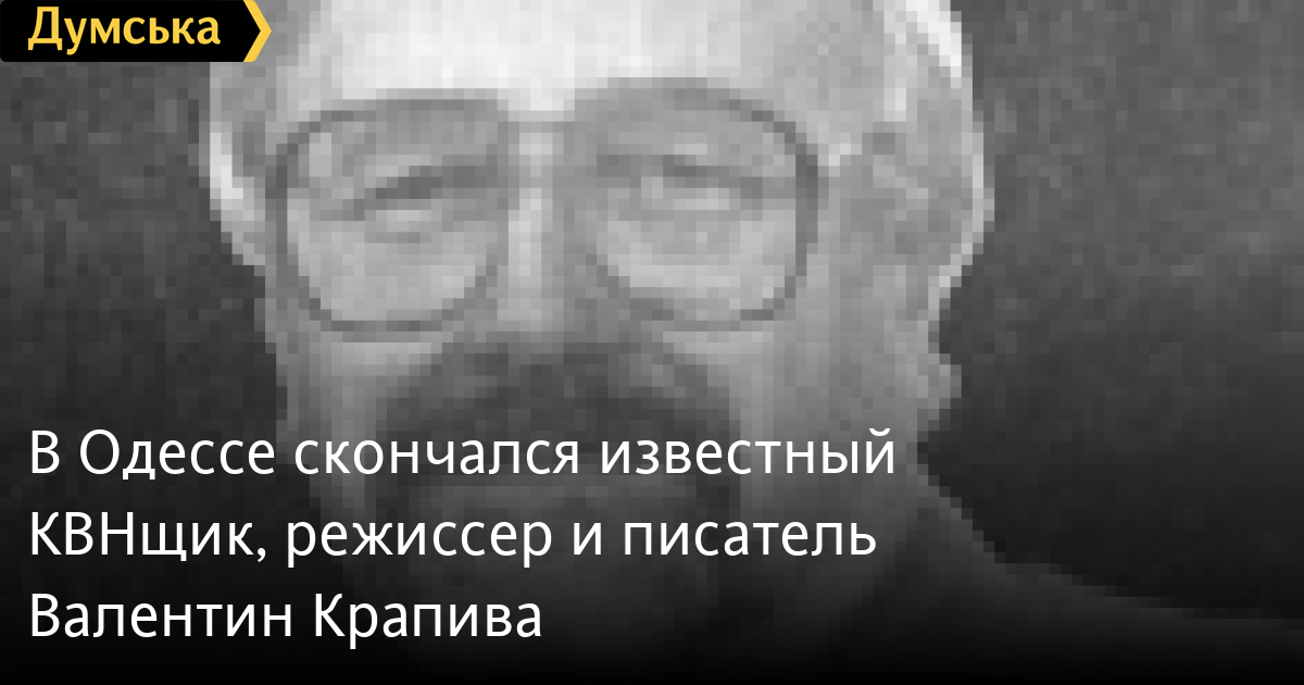 Сегодня в Одессе ушел из жизни Валентин Владимирович Крапива, чемпион первенства СССР по КВН сезонов 1966-1967 (сборная города «Одесские трубочисты») и 1971 года (команда «Деловые люди» Одесского института народного хозяйства). Похороны выдающегося режиссера-постановщика, журналиста, педагога, воспитавшего замечательную плеяду молодых талантов, автора более двух десятков книг, состоятся в четверг, 26 сентября. Прощание с мастером состоится в 11:00 в церкви на Западном кладбище. Автобус из Валиховского переулка — в 10:30. СМЕРТЬ РОССИЙСКИМ ОККУПАНТАМ! Заметили ошибку? Выделяйте слова с ошибкой и нажимайте control-enter |