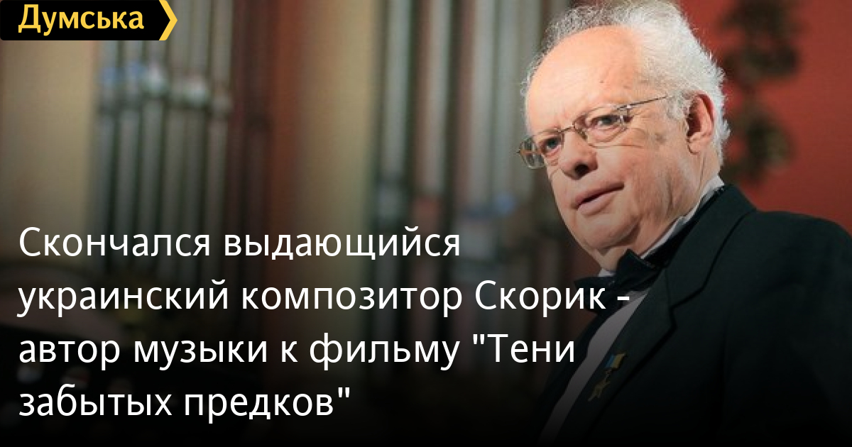 Скончался выдающийся украинский композитор Скорик — автор музыки к фильму «Тени забытых предков»На 82 году жизни скончался советский и украинский композитор Мирослав Скорик. Об этом сообщают друзья и коллеги Скорика. «Отошел в Вечность выдающийся деятель искусства и искренний, надежный друг — Мирослав Михайлович Скорик», — сообщил на своей странице в Фейсбуке главный режиссер Национальной оперы Украины им. Шевченко Анатолий Соловьяненко. Отметим, Мирославу Скорику присвоили звание Героя Украины за выдающиеся личные заслуги перед государством в развитии национального музыкального искусства, многолетнюю плодотворную композиторскую, педагогическую и общественную деятельность. Также он является обладателем ордена «За заслуги» I степени за весомый личный вклад в социально-экономическое и культурное развитие Украины, высокий профессионализм и многолетний добросовестный труд, ордена «За заслуги» II степени — за весомый личный вклад в увековечение памяти Ивана Франко, ордена «За заслуги» III степени — за значительный личный вклад в развитие украинского музыкального искусства, многолетнюю творческую и педагогическую деятельность. Скорик является автором музыки к таким фильмам как «Тени забытых предков», «Гуси-лебеди летят», «Высокий перевал» и других лент. 13 июля ему исполнилось бы 82 года. СМЕРТЬ РОССИЙСКИМ ОККУПАНТАМ! Заметили ошибку? Выделяйте слова с ошибкой и нажимайте control-enter |