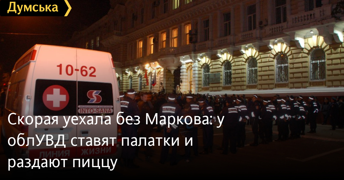 Карета скорой помощи частной клиники «Инто-Сана» покинула Еврейскую улицу без задержанного «оппозиционера» Игоря Маркова. Как передает с места событий наш корреспондент, сразу после прибытия врач скорой зашел в здание облУВД, потом вышел, пообщался с братом задержанного Олегом Марковым, который вызвал бригаду, после чего медики уехали. Тем временем сторонники опального политика начали устанавливать на улице палатки. К облУВД привезли пиццу, столы, генератор и проектор. Джипы и мусоровозы по-прежнему блокируют выезды с территории облуправления. Милиция, однако, подтягивает к зданию дополнительные силы — бойцов в снаряжении для разгона массовых акций. Окрестные улицы, включая Пушкинскую, перекрыты. СМЕРТЬ РОССИЙСКИМ ОККУПАНТАМ! Заметили ошибку? Выделяйте слова с ошибкой и нажимайте control-enter |