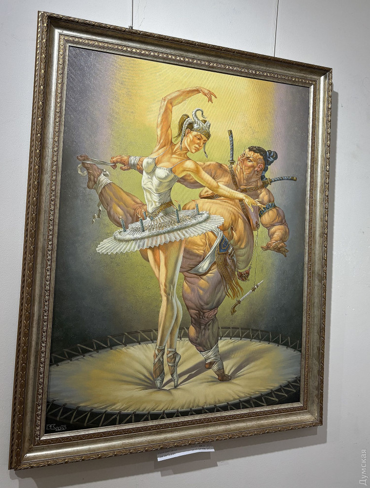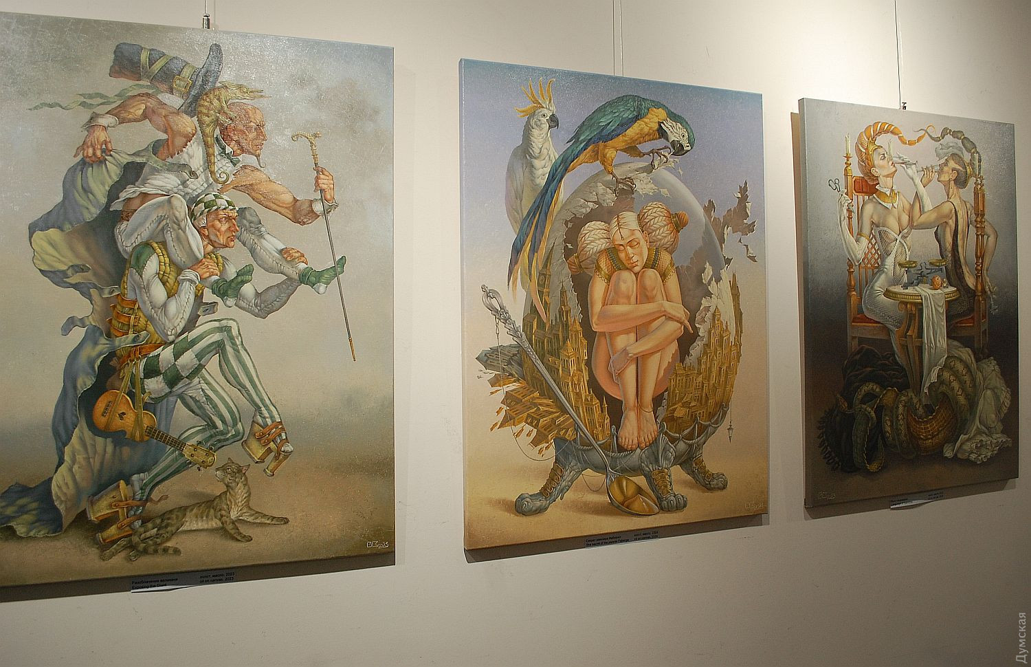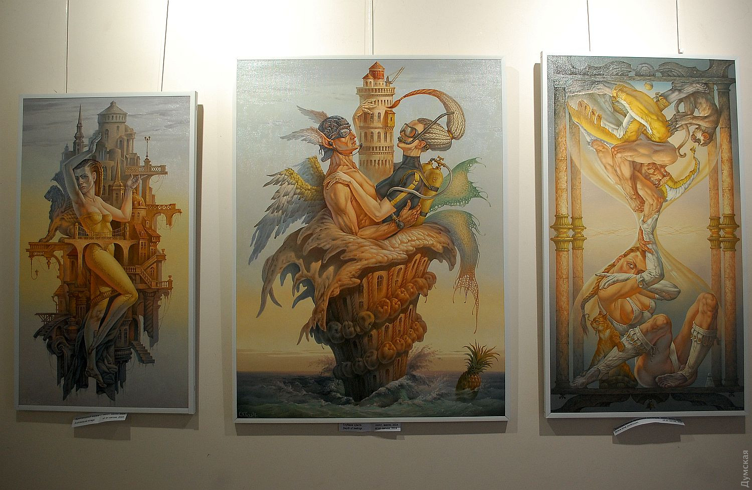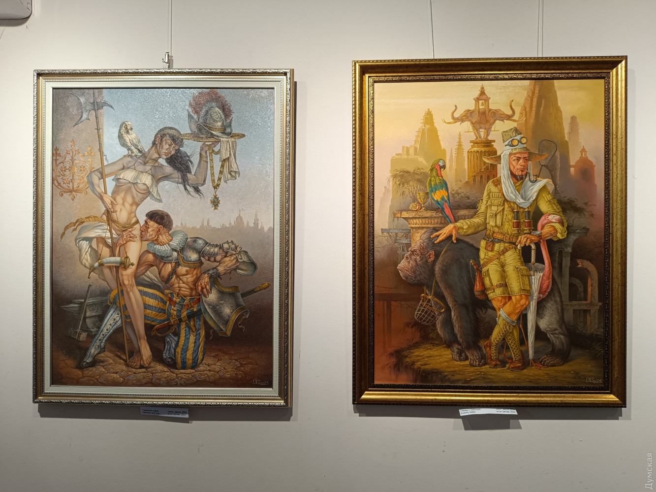 «Скуті бажання» та «Вишуканий вигин»: одеський Сальвадор Далі представив публіці свої «Польоти уві сні»Виставка живопису Валерія Каплі «Польоти уві сні» (сюрреалістична фантазія) прикрашає галерею ArtOdessа в Літньому театрі Міського саду. Проєкт представляє серію творів, написаних автором за останні п'ять років. Попередня виставка Валерія успішно проходила в тій самій залі у серпні 2020 року, про що ми писали тут. Знову можна переконатися, що навіть класик сюрреалізму Сальвадор Далі міг би позаздрити багатій уяві одеського митця. В цих картинах прибічники альтернативного підходу до світової історії знаходять підтвердження найхимернішим уявленням про земну цивілізацію. Автор зізнається, що йому хотілося би, аби глядач затамував подих біля кожної роботи. «Сюрреалізм – напрямок у мистецтві, в основі якого лежить вихід за межі реального, — нагадує директор галереї Катерина Пименова. — Представлений у живопису, літературі, кінематографі, він вже давно вийшов за грані творчості та став частиною повсякденності. Саме сюрреалістичними часом здаються події, що відбуваються щодня у світі та в нашій країні. І це змушує людину приймати нові правила гри, адаптуватися до реальності, що швидко змінюється. Ми зможемо роздивитися нестримний політ фантазії, занурення в психологію несвідомого, бездоганну «готичну» пластичність і витончену філософію ірраціонального, але прекрасного». За словами директорки галереї, у роботах Валерія Каплі хитромудрість сюжету та інтригуючий зміст образів створює високу естетичну ноту, на якій здійснюється звучання його живопису. Герої у художника гарні собою і більш ніж загадкові. Пристрої – складні та химерні. Тварини – казкові та експресивні. Предмети та об'єкти відсилають до прекрасного минулого, сповненого краси та гармонії. До речі про гармонію. Еротичний сюжет «Гармонія та Обов’язок», у якому останній шанобливо цілує стегно першої, натякає на те, що людське буття має передусім бути гармонійним. Інша куртуазна картина, «Вишуканий вигин», вчить мистецтву поцілунку краю одежини прекрасної дами. Забули про таке, а даремно! «Енергія, яка дарує світло» зображена у вигляді ще однієї красивої жінки, яка їде верхи на гігантському мурахоїді, а в руках у неї старомодна настільна лампа з зеленим абажуром. Це перше, що кидається в око. Але на полотні це не кінець складного поєднання символів, метафор, несподіваних трактувань звичного. В результаті народжується парадокс, і головне – вихід за межі, визволення. Андре Бретон, французький письменник і поет, один із теоретиків та основоположників сюрреалізму, стверджував у своєму «Маніфесті», що мистецтво має стати одним із інструментів визволення людського духу. Картина «Скуті бажання» знову працює з образами вже двох мурахоїдів, обмежених мотузкою та кліткою, проте поєднаних між собою нерозривно. Залишається чекати, що сила бажань розірве та перетре усі обмеження… Автор — Ірен Адлер, фото Володимира Андрєєва СМЕРТЬ РОСІЙСЬКИМ ОКУПАНТАМ! Помітили помилку? Виділяйте слова з помилкою та натискайте control-enter |