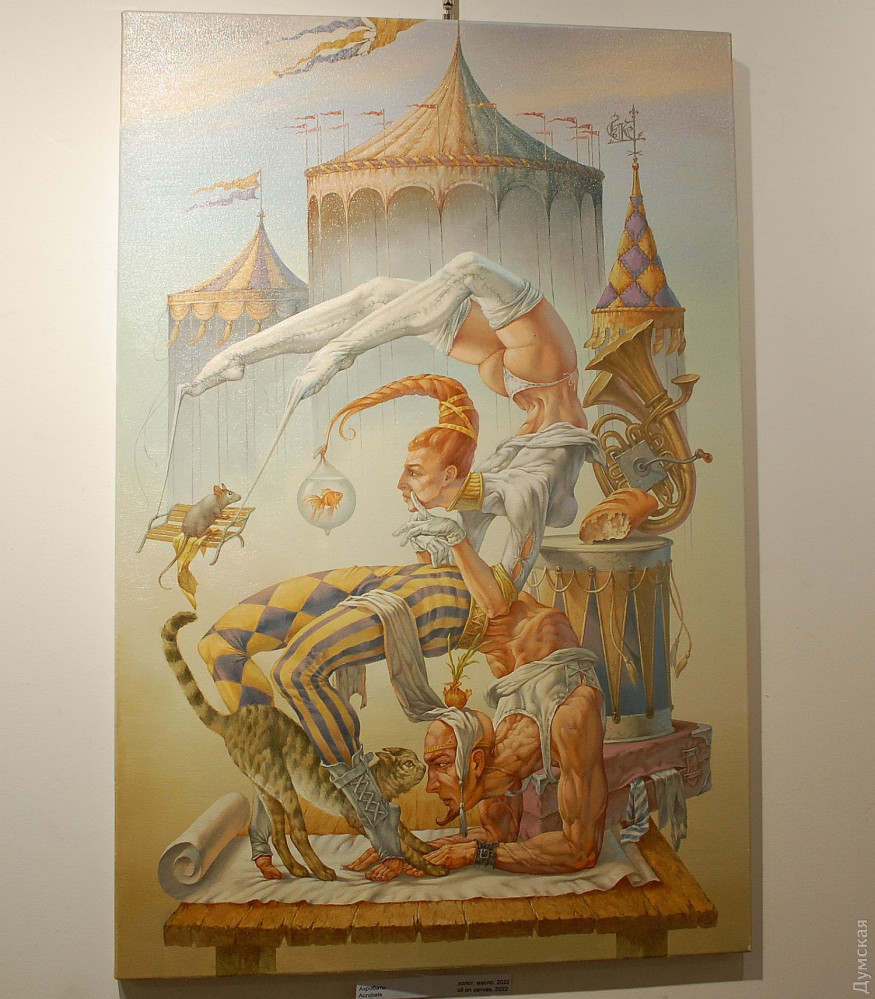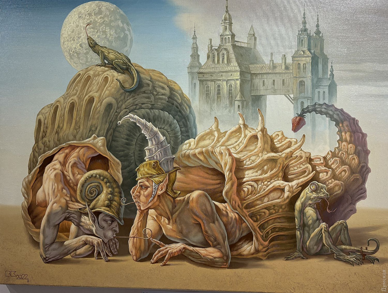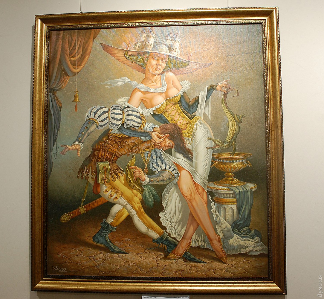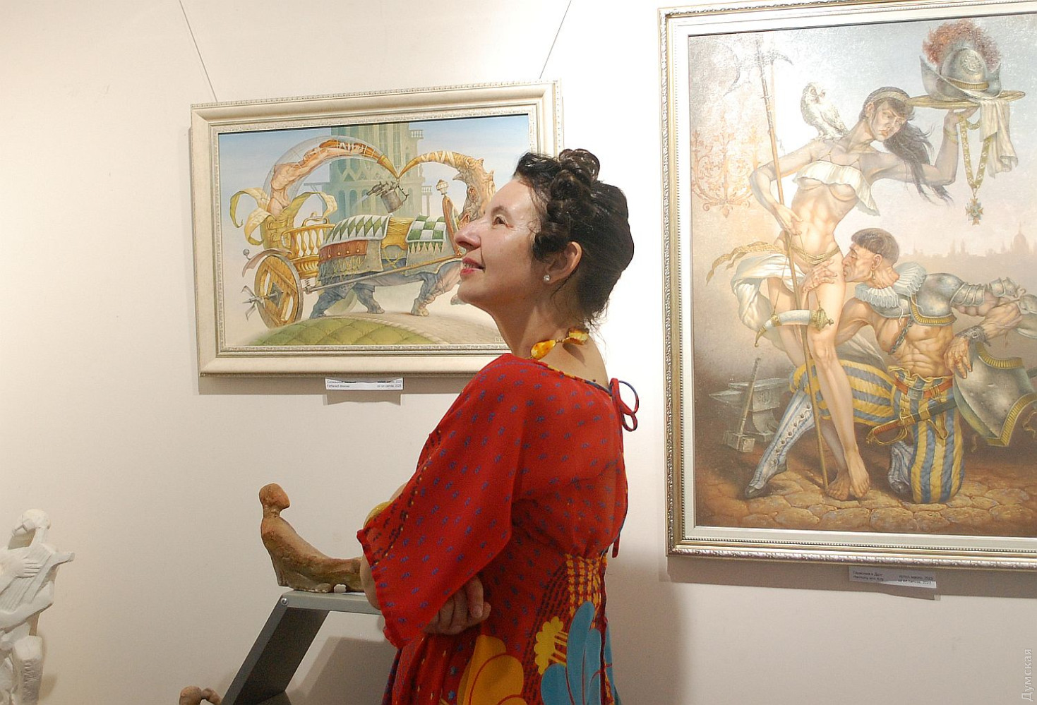 «Скуті бажання» та «Вишуканий вигин»: одеський Сальвадор Далі представив публіці свої «Польоти уві сні»Виставка живопису Валерія Каплі «Польоти уві сні» (сюрреалістична фантазія) прикрашає галерею ArtOdessа в Літньому театрі Міського саду. Проєкт представляє серію творів, написаних автором за останні п'ять років. Попередня виставка Валерія успішно проходила в тій самій залі у серпні 2020 року, про що ми писали тут. Знову можна переконатися, що навіть класик сюрреалізму Сальвадор Далі міг би позаздрити багатій уяві одеського митця. В цих картинах прибічники альтернативного підходу до світової історії знаходять підтвердження найхимернішим уявленням про земну цивілізацію. Автор зізнається, що йому хотілося би, аби глядач затамував подих біля кожної роботи. «Сюрреалізм – напрямок у мистецтві, в основі якого лежить вихід за межі реального, — нагадує директор галереї Катерина Пименова. — Представлений у живопису, літературі, кінематографі, він вже давно вийшов за грані творчості та став частиною повсякденності. Саме сюрреалістичними часом здаються події, що відбуваються щодня у світі та в нашій країні. І це змушує людину приймати нові правила гри, адаптуватися до реальності, що швидко змінюється. Ми зможемо роздивитися нестримний політ фантазії, занурення в психологію несвідомого, бездоганну «готичну» пластичність і витончену філософію ірраціонального, але прекрасного». За словами директорки галереї, у роботах Валерія Каплі хитромудрість сюжету та інтригуючий зміст образів створює високу естетичну ноту, на якій здійснюється звучання його живопису. Герої у художника гарні собою і більш ніж загадкові. Пристрої – складні та химерні. Тварини – казкові та експресивні. Предмети та об'єкти відсилають до прекрасного минулого, сповненого краси та гармонії. До речі про гармонію. Еротичний сюжет «Гармонія та Обов’язок», у якому останній шанобливо цілує стегно першої, натякає на те, що людське буття має передусім бути гармонійним. Інша куртуазна картина, «Вишуканий вигин», вчить мистецтву поцілунку краю одежини прекрасної дами. Забули про таке, а даремно! «Енергія, яка дарує світло» зображена у вигляді ще однієї красивої жінки, яка їде верхи на гігантському мурахоїді, а в руках у неї старомодна настільна лампа з зеленим абажуром. Це перше, що кидається в око. Але на полотні це не кінець складного поєднання символів, метафор, несподіваних трактувань звичного. В результаті народжується парадокс, і головне – вихід за межі, визволення. Андре Бретон, французький письменник і поет, один із теоретиків та основоположників сюрреалізму, стверджував у своєму «Маніфесті», що мистецтво має стати одним із інструментів визволення людського духу. Картина «Скуті бажання» знову працює з образами вже двох мурахоїдів, обмежених мотузкою та кліткою, проте поєднаних між собою нерозривно. Залишається чекати, що сила бажань розірве та перетре усі обмеження… Автор — Ірен Адлер, фото Володимира Андрєєва СМЕРТЬ РОСІЙСЬКИМ ОКУПАНТАМ! Помітили помилку? Виділяйте слова з помилкою та натискайте control-enter |