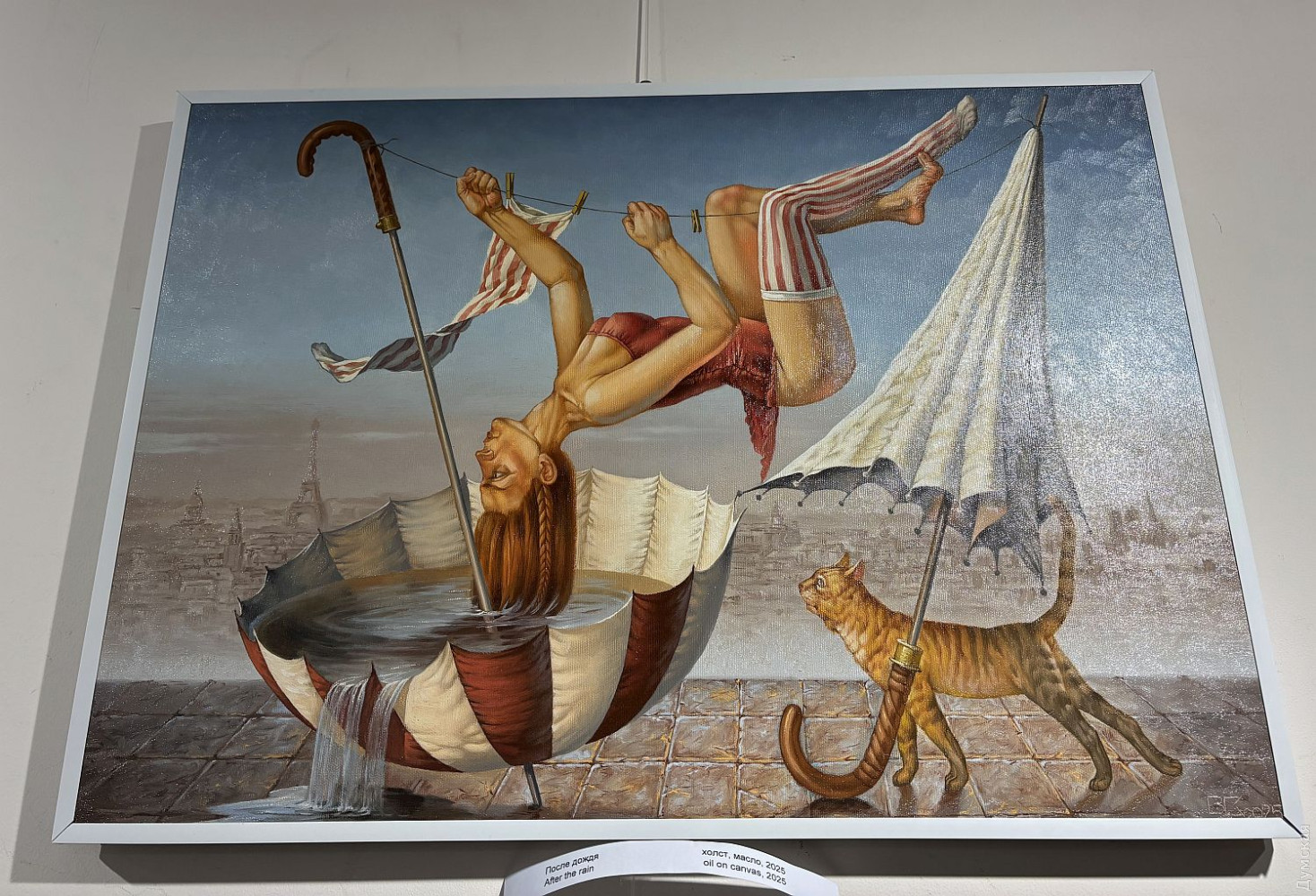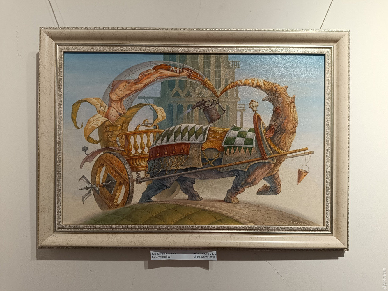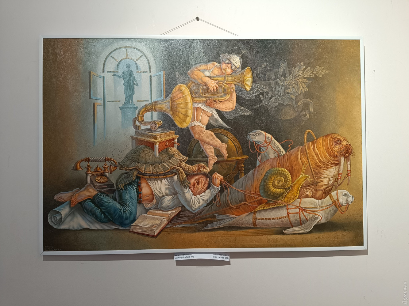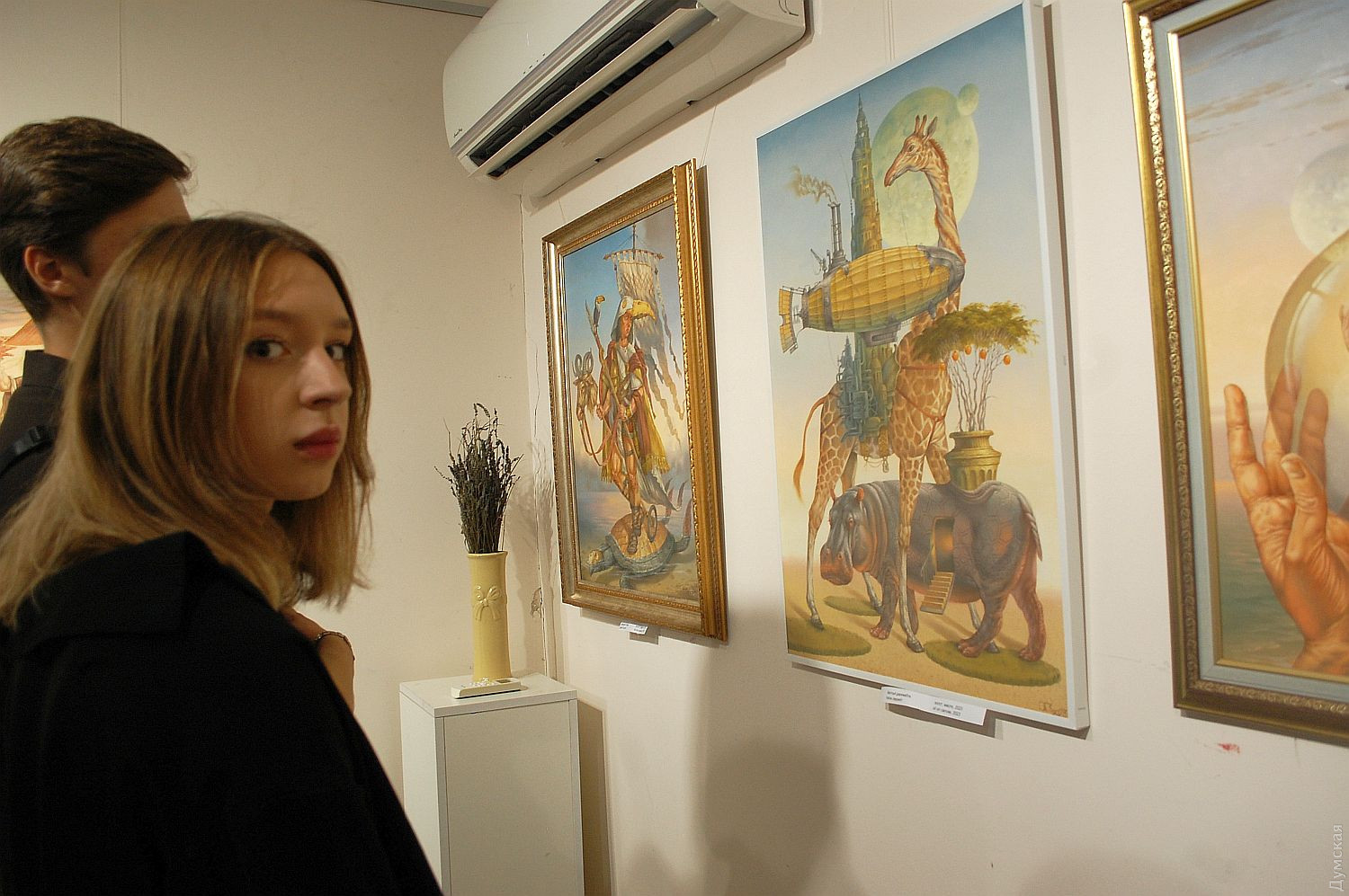 «Скуті бажання» та «Вишуканий вигин»: одеський Сальвадор Далі представив публіці свої «Польоти уві сні»Виставка живопису Валерія Каплі «Польоти уві сні» (сюрреалістична фантазія) прикрашає галерею ArtOdessа в Літньому театрі Міського саду. Проєкт представляє серію творів, написаних автором за останні п'ять років. Попередня виставка Валерія успішно проходила в тій самій залі у серпні 2020 року, про що ми писали тут. Знову можна переконатися, що навіть класик сюрреалізму Сальвадор Далі міг би позаздрити багатій уяві одеського митця. В цих картинах прибічники альтернативного підходу до світової історії знаходять підтвердження найхимернішим уявленням про земну цивілізацію. Автор зізнається, що йому хотілося би, аби глядач затамував подих біля кожної роботи. «Сюрреалізм – напрямок у мистецтві, в основі якого лежить вихід за межі реального, — нагадує директор галереї Катерина Пименова. — Представлений у живопису, літературі, кінематографі, він вже давно вийшов за грані творчості та став частиною повсякденності. Саме сюрреалістичними часом здаються події, що відбуваються щодня у світі та в нашій країні. І це змушує людину приймати нові правила гри, адаптуватися до реальності, що швидко змінюється. Ми зможемо роздивитися нестримний політ фантазії, занурення в психологію несвідомого, бездоганну «готичну» пластичність і витончену філософію ірраціонального, але прекрасного». За словами директорки галереї, у роботах Валерія Каплі хитромудрість сюжету та інтригуючий зміст образів створює високу естетичну ноту, на якій здійснюється звучання його живопису. Герої у художника гарні собою і більш ніж загадкові. Пристрої – складні та химерні. Тварини – казкові та експресивні. Предмети та об'єкти відсилають до прекрасного минулого, сповненого краси та гармонії. До речі про гармонію. Еротичний сюжет «Гармонія та Обов’язок», у якому останній шанобливо цілує стегно першої, натякає на те, що людське буття має передусім бути гармонійним. Інша куртуазна картина, «Вишуканий вигин», вчить мистецтву поцілунку краю одежини прекрасної дами. Забули про таке, а даремно! «Енергія, яка дарує світло» зображена у вигляді ще однієї красивої жінки, яка їде верхи на гігантському мурахоїді, а в руках у неї старомодна настільна лампа з зеленим абажуром. Це перше, що кидається в око. Але на полотні це не кінець складного поєднання символів, метафор, несподіваних трактувань звичного. В результаті народжується парадокс, і головне – вихід за межі, визволення. Андре Бретон, французький письменник і поет, один із теоретиків та основоположників сюрреалізму, стверджував у своєму «Маніфесті», що мистецтво має стати одним із інструментів визволення людського духу. Картина «Скуті бажання» знову працює з образами вже двох мурахоїдів, обмежених мотузкою та кліткою, проте поєднаних між собою нерозривно. Залишається чекати, що сила бажань розірве та перетре усі обмеження… Автор — Ірен Адлер, фото Володимира Андрєєва СМЕРТЬ РОСІЙСЬКИМ ОКУПАНТАМ! Помітили помилку? Виділяйте слова з помилкою та натискайте control-enter |