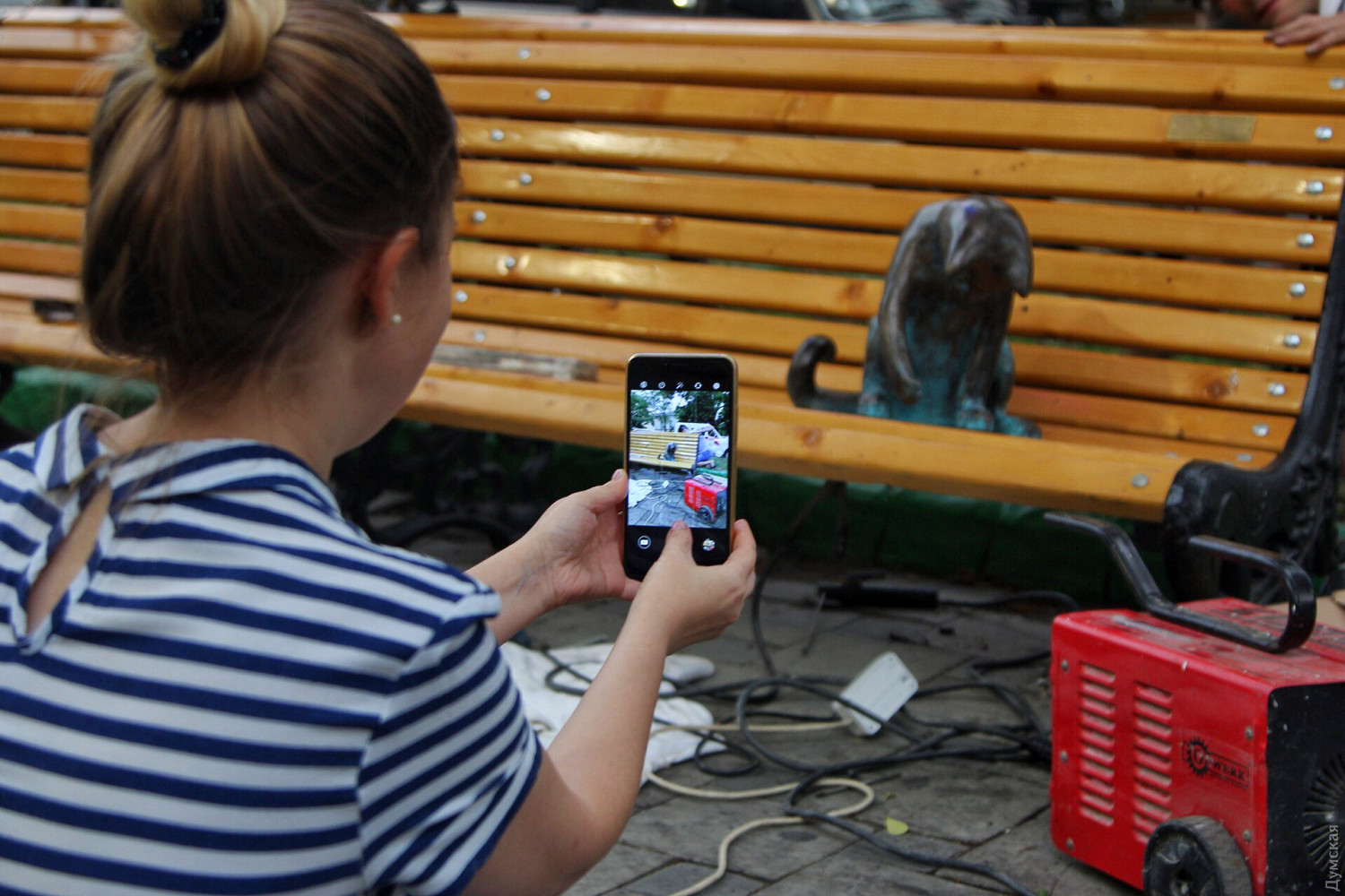 Скульптурную композицию «Пушинка», установленную в рамках проекта «Одесские коты» 4 июля этого года и похищенную спустя всего две недели, воссоздали. Сейчас копию украденной статуи приваривают к скамейке в переулке Маяковского. Планшет, на котором играла кошка-геймерша, будут монтировать позже. Открыть воссозданную скульптуру обещают завтра.