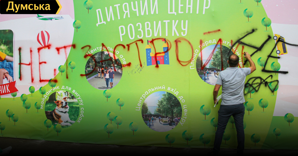 «В 2016 я, как депутат, помог отбить вторую попытку застроить сквер, — рассказал депутат городского совета Вадим Терещук. — Сейчас предпринимается еще одна попытка построить здесь детский центр под видом благоустройства. Мы такое уже видели на Королева, когда детский центр превратился в торговый».