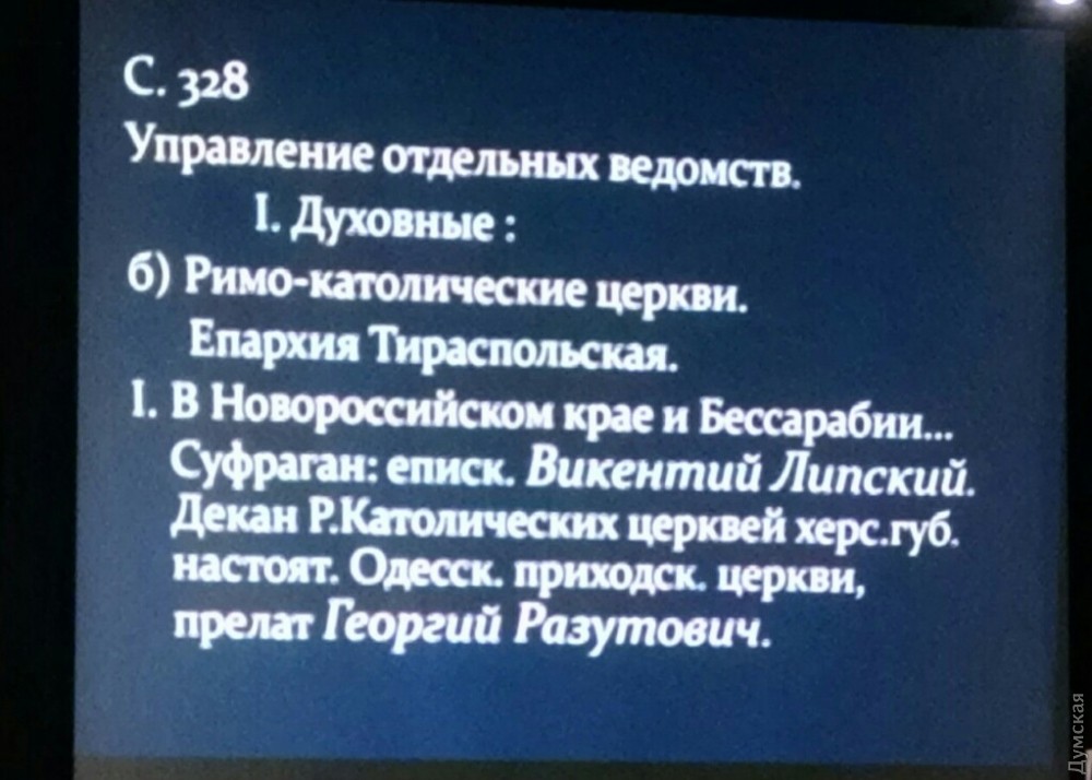 Следствие ведут искусствоведы: ученые двух одесских музеев устанавливали личность героя картиныВ Одесском музее западного и восточного искусства состоялось расширенное заседание научно-методического совета. Ученые-искусствоведы искали ответ на вопрос: кто изображен на картине Ромуальда Хойнацкого «Портрет епископа», которая хранится в запасниках музея. Художник Хойнацкий известен своей портретной и духовной живописью. В 1850 году, в возрасте 32 лет, он приехал в наш город на лечение, после чего прожил здесь еще 35 лет, до самой смерти. В 1860 году художник написал портрет немолодого человека. К сожалению, имя его на картине не указано — по всей видимости, он был достаточно известен. На обороте имеется дарственная надпись на польском языке, подписанная несколькими польскими и немецкими фамилиями. Судя по ней, картину написали «в знак признания заслуг». В 1927 года картина была передана музею из католического благотворительного приюта, который находился на Полицейской улице (сейчас Бунина). Одесские ученые пытаются выяснить, кто изображен на картине, и вынесли результаты своих исследований на расширенное заседание ученого совета. Это первое мероприятие в таком формате: в заседании приняли участие сотрудники двух одесских музеев и приглашенные специалисты. «Подозреваемых» трое: это известные католические священнослужители середины XIX века — епископ Фердинанд Кан, епископ Викентий Липский и прелат Гжегож Разутович. При этом у Фердинанда Кана обнаружилось «алиби»: в те годы, когда была написана картина, он редко появлялся в Одессе. Заместитель директора Художественного музея по научной работе Сергей Седых убежден, что на картине изображен епископ Викентий Липский. Бывший ректор петербургской духовной академии в 1857 году стал католическим епископом, освящал церкви и алтари в Херсонской, Екатеринославской, Таврической и Бессарабской губерниях. Он основал много новых приходов и часовен, занимался благотворительной деятельностью, строил приюты и пользовался большим уважением прихожан. Викентий Липский скончался в 1875 году и в знак признания заслуг был похоронен в соборе Успения Богородицы на Екатерининской улице, где покоятся выдающиеся одесситы-католики. К сожалению, изображений епископа не сохранилось, однако Сергей Седых уверен, что на картине нарисован именно Викентий Липский, которому во время создания полотна было 65 лет. В свою очередь, старший научный сотрудник музея западного и восточного искусства Владимир Островский предполагает, что на картине изображен Гжегож Разутович — строитель и настоятель католического собора в Одессе, который также многие годы инспектировал католические приходы в окрестностях Одессы. В ходе исследования Владимир Островский установил людей, чьи имена указаны на дарственной надписи на обороте картины — это настоятели церквей, расположенных в немецких поселениях под Одессой. Среди тех, кто заказал художнику эту картину, были Христофор Петкевич — настоятель храма в селе Йозефсталь, и Рох Песлак — иеромонах, который служил в немецкой колонии Зельц. По мнению исследователя, эта картина — подарок священников Гжегожу Разутовичу, который инспектировал и опекал их приходы, к его 50-летию. Тот факт, что священник изображен с атрибутами епископа, Владимир Островский объясняет тем, что он имел