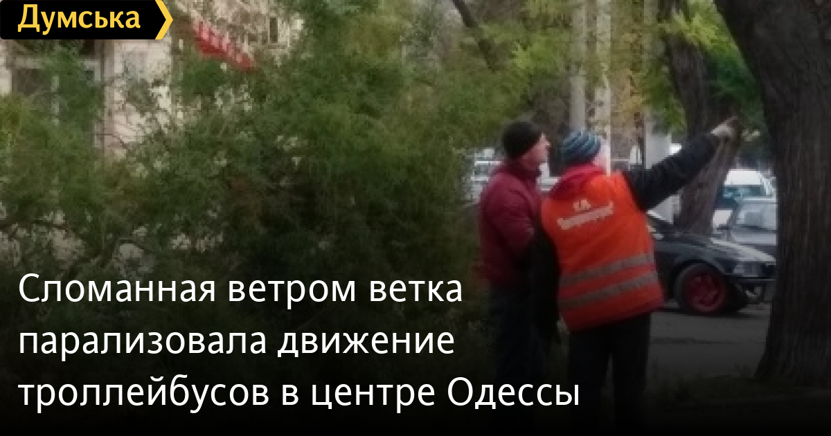 На углу улицы Большой Арнаутской и переулка Утесова ветка дерева не выдержала сильного ветра и упала на провода. Из-за этого движение троллейбусов №8 временно приостановлено. Электротранспорт стоит по обеим сторонам Большой Арнаутской, что значительно затруднило проезд автомобилей, пишет «Трасса Е-95». В пресс-службе коммунального предприятия «Одесгорэлектротранс» сообщили, что ремонтные работы на данном участке уже завершаются, движение троллейбусов скоро будет восстановлено. Напомним, вчера в центре Одессы упавшее дерево повредило четыре автомобиля. СМЕРТЬ РОССИЙСКИМ ОККУПАНТАМ! Заметили ошибку? Выделяйте слова с ошибкой и нажимайте control-enter |