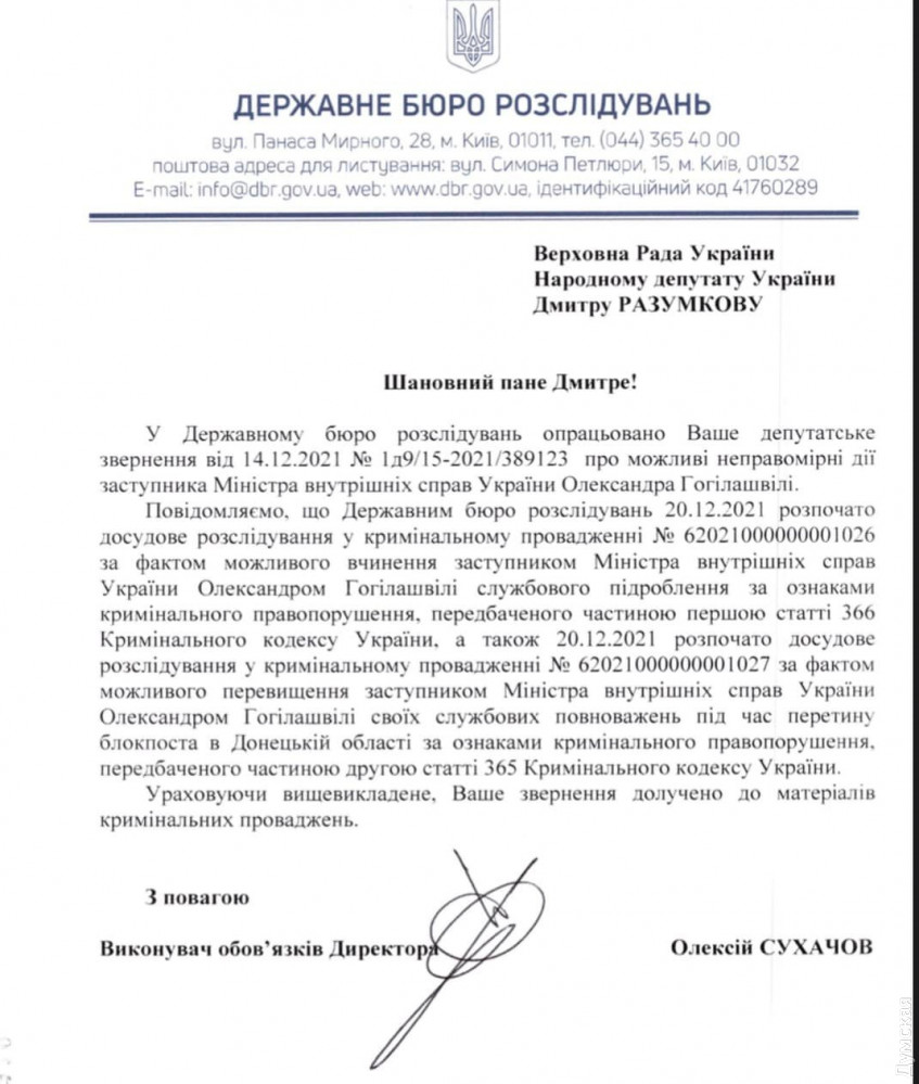Служебный подлог, превышение полномочий: ГБР начало расследование в отношении экс-замминистра МВД ГогилашвилиДосудебное расследование по факту возможного совершения экс-заместилем министра внутеренних дел Александром Гогилашвили служебного подлога и превышения полномочий начало Государственное бюро расследований. Об этом сообщил народный депутат Дмитрий Разумков, обнародовав ответ ведомства на свой запрос. Производство открыли по ч. 1 ст. 366 (служебный подлог), а также по ст. 365 УК Украины (превышение служебных полномочий). Речь идет о событиях, которые произошли в начале декабря при пересечении блокпоста в Донецкой области. Напомним, Кабинет министров Украины уволил заместителя министра внутренних дел после скандала на блокпосту в зоне проведения операции Объединенных сил. Гогилашвили отличился, когда его остановили на одном из блокпостов в зоне ООС, чтобы проверить документы. Он начал ругаться с правоохранителями и угрожать им неприятностями. Все это сопровождалось нецензурной лексикой. После скандала выяснилось, что у Гогилашвили есть российское гражданство, свою политическую карьеру он начинал помощником депутата Госдумы РФ Николая Валуева. Перебравшись в Украину, занялся курированием сети сомнительных реабилитационных центров, где по некоторым данным пытали наркозависимых. СМЕРТЬ РОССИЙСКИМ ОККУПАНТАМ! Заметили ошибку? Выделяйте слова с ошибкой и нажимайте control-enter |
