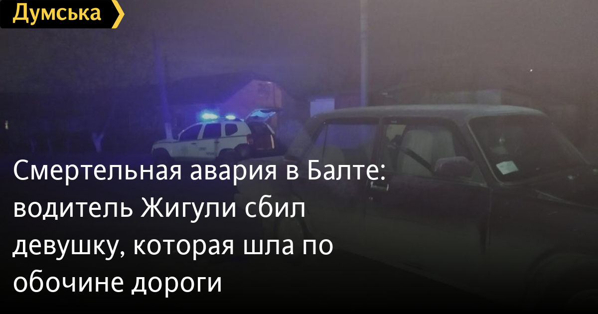 Смертельная авария в Балте: водитель «Жигули» сбил девушку, которая шла по обочине дорогиПравоохранители устанавливают обстоятельства смертельной аварии, которая произошла вчера вечером в Балте. Как сообщили в ГУНП, на одной из улиц города водитель автомобиля «ВАЗ» наехал на 25-летнюю девушку, которая шла по обочине. Пострадавшую увезла скорая, но по дороге в больницу от полученных травм она скончалась. Решается вопрос о внесении сведений в Единый реестр досудебных расследований по ч. 2 ст. 286 (нарушение правил безопасности дорожного движения или эксплуатации транспорта лицом, управляющим транспортным средством, повлекшее смерть потерпевшего) Уголовного кодекса Украины. СМЕРТЬ РОССИЙСКИМ ОККУПАНТАМ! Заметили ошибку? Выделяйте слова с ошибкой и нажимайте control-enter Новости по этой теме: 17 октября 2025: На трассе Киев – Одесса перевернулся автобус с людьми: восемь пассажиров пострадали 30 августа 2025: Машина вылетела в кювет: мэр Рени попал в аварию, его мать погибла, а маленький сын в больнице (фото) 18 августа 2025: Трое погибли, один в больнице: на трассе Одесса-Рени водитель Mercedes не пропустила фуру (фото) 28 июля 2025: Пьяный на «Ягуаре» или гипертоник? Уволенный топ-чиновник одесской полиции хочет вернуться на службу |