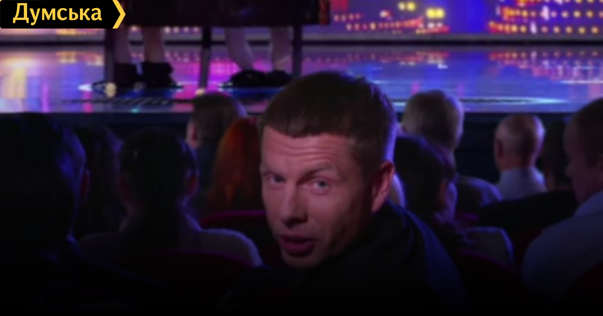 На видео Гончаренко сидит в зрительском зале, перед которым на сцене разыгрывается получившая большую популярность сценка из «95-го квартала» — комик играет гениталиями на рояле.