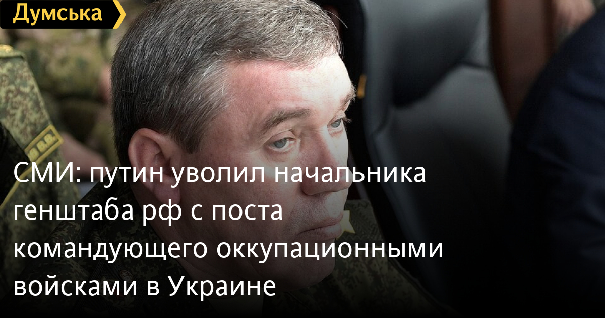 ЗМІ: путін звільнив начальника генштабу рф з посади командувача окупаційними військами в УкраїніДиктатор володимир путін звільнив генерала Валерія Герасимова з посади командувача російськими військами в Україні. Про це пише Daily Mail із посиланням на неназвані російські ЗМІ. Стверджується, що Герасимова замінив командувач ВДВ рф генерал-полковник Михайло Теплинський. «Герасимов залишиться керувати російською армією як начальник Генштабу, але загальна відповідальність за війну тепер лягає на Теплинського, командувача повітряно-десантними військами країни», — стверджують автори матеріалу. Генерал Герасимов очолює окупаційні війська із січня 2023 року. Жодної інформації про його звільнення «Думська» в російських медіа не знайшла. Проте воєначальник не з'являвся на публіці з дня заколоту ПВК «Вагнер»: відомо, що власник останньої Євген Пригожин вимагав відставки Герасимова і міністра оборони Сергія Шойгу. СМЕРТЬ РОСІЙСЬКИМ ОКУПАНТАМ! Помітили помилку? Виділяйте слова з помилкою та натискайте control-enter |
