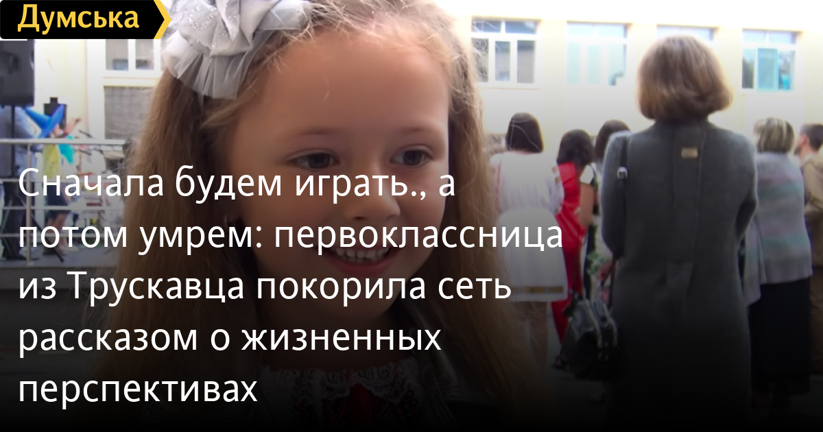 «Сначала будем играть…., а потом умрем»: первоклассница из Трускавца покорила сеть рассказом о жизненных перспективах6-летняя первоклассница по имени Адель из Трускавца покорила пользователей сети своим ответом на вопрос журналистки – почему она хочет идти учиться в школу. «Потому что здесь мы будем сначала играть, потом пойдем учиться, потом еще пойдем учиться, потом в другую пойдем школу, потом – институт, и на работу, и потом умрем», – сказала девочка. В комментариях пользователи хвалят ребенка за «коротко и по сути» изложенный план. СМЕРТЬ РОССИЙСКИМ ОККУПАНТАМ! Заметили ошибку? Выделяйте слова с ошибкой и нажимайте control-enter |
