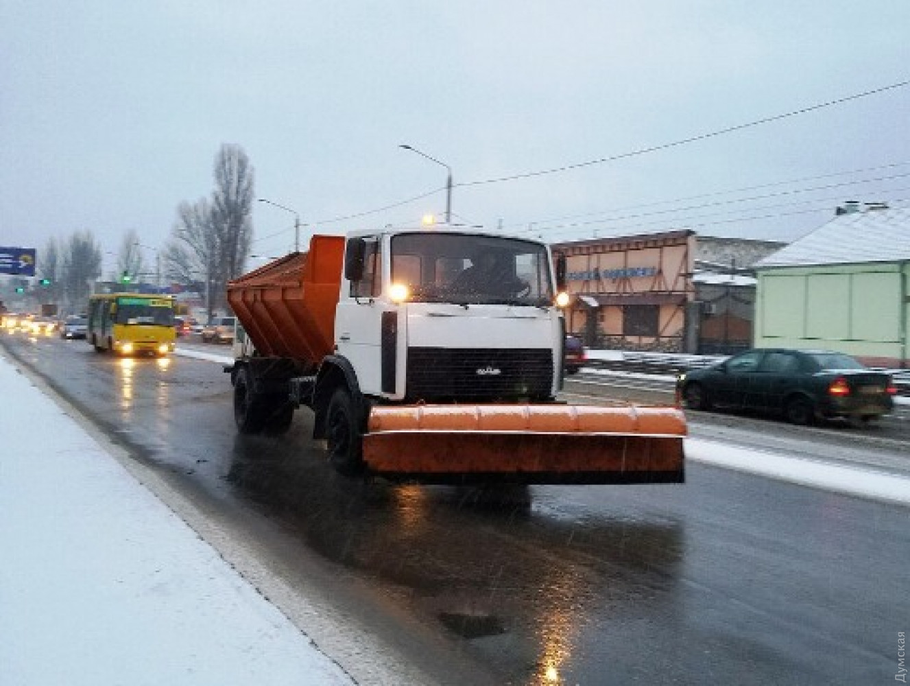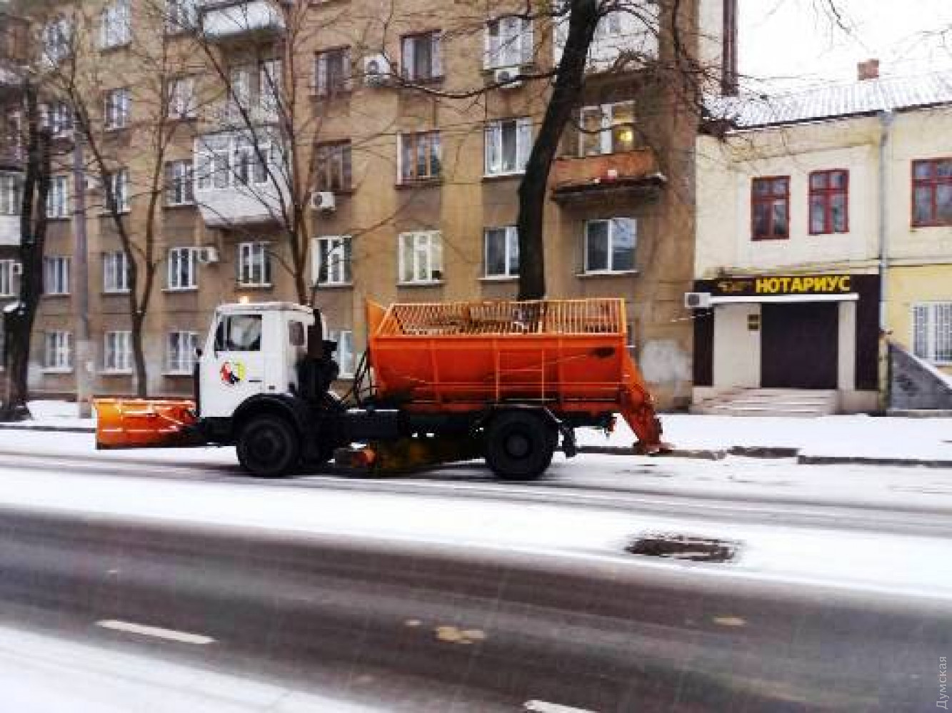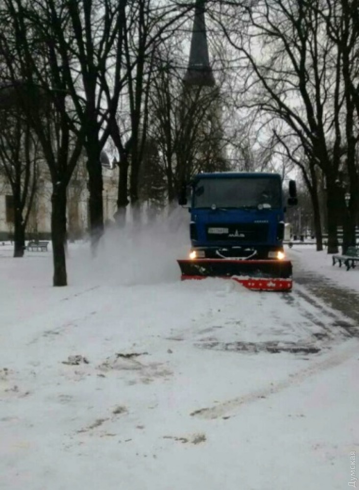 Снег в Одессе: на дорогах города работают 80 единиц спецтехники, проезжаемость нормальнаяВ связи с выпавшим снегом одесские коммунальщики работают в круглосуточном режиме. Как сообщили в муниципалитете, по состоянию на 9 часов утра 8 января 2019 года на всех магистральных дорогах Одессы обеспечена нормальная проезжаемость. «На данный момент работы продолжаются, на улицах города работают 80 единиц спецтехники КП «Городские дороги», использовано 1400 тонн песчано-солевой смеси. Задействованы 250 сотрудников предприятия (дворники, дорожники, водители и механизаторы). Кроме того, в работах по очистке от снега задействованы работники КП «ЖКС» и КП «Горзелентрест» — 1800 человек. Использовано 69,1 тонн песчано-солевой смеси для посыпки тротуаров и остановочных комплексов», — отмечают в муниципалитете. Выполнение данных работ находится на постоянном контроле первого вице-мэра Одессы Анатолия Орловского. Одесситов просят не оставлять транспортные средства под деревьями и линиями электропередач, а пожилым людям, беременным женщинам и детям рекомендовано максимально ограничить пребывание на улице. СМЕРТЬ РОСІЙСЬКИМ ОКУПАНТАМ! Помітили помилку? Виділяйте слова з помилкою та натискайте control-enter