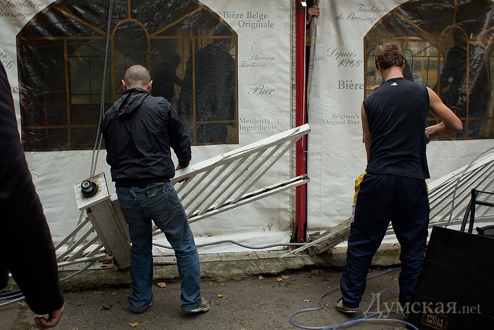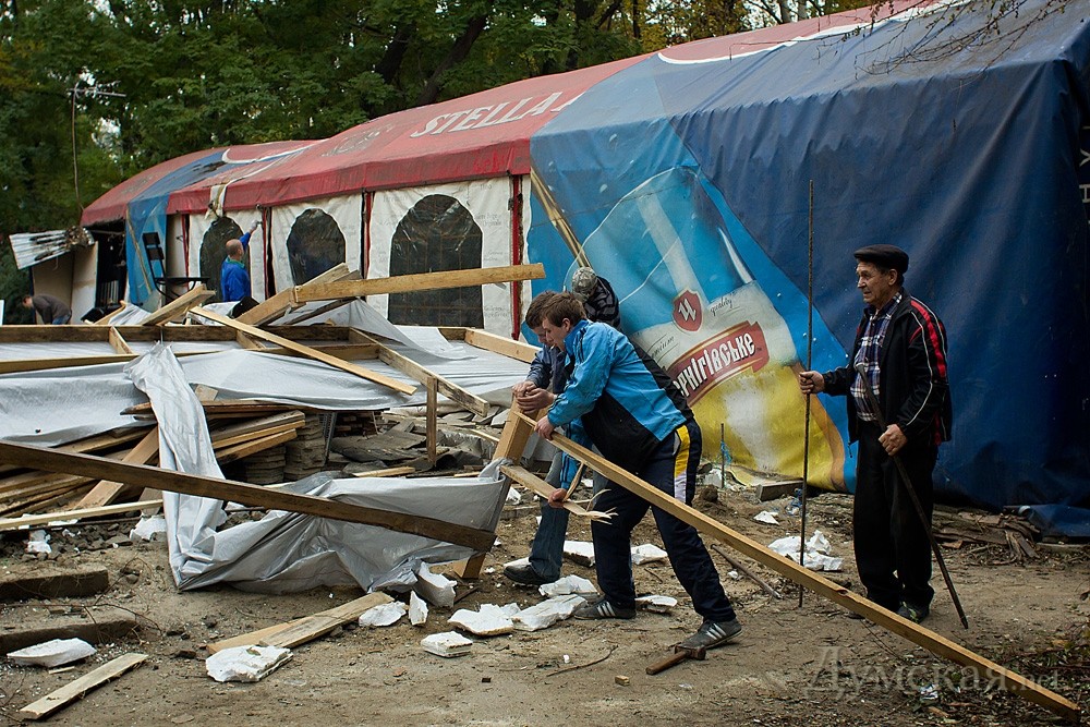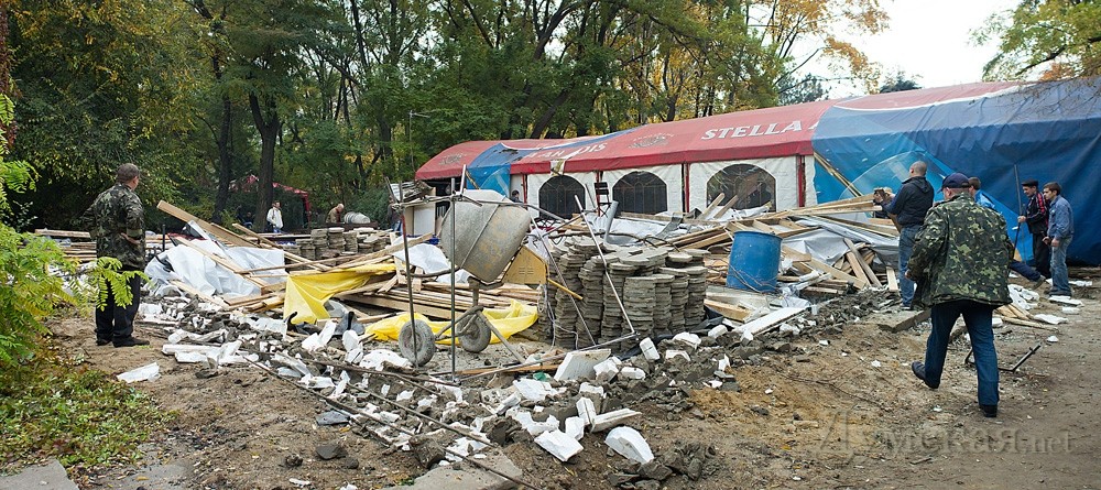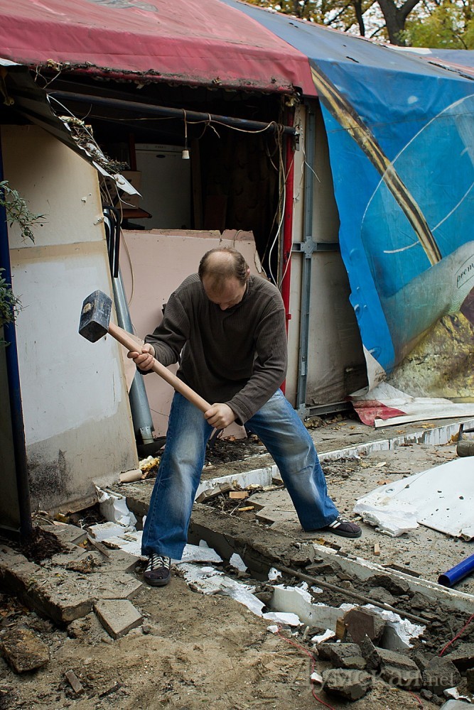 Сотрудники управления развития потребительского рынка и защиты прав потребителей Одесского горсовета сегодня снесли очередное заведение общепита. На этот раз под раздачу попала наливайка на Куликовом поле. Как рассказал «Думской» начальник управления Олесь Янчук, площадь заведения, принадлежащего СПД Смешко, росла с каждым годом. В итоге исполком вынес решение о демонтаже торговой точки. В то же время ее владелец ссылается на определение Приморского районного суда, который демонтаж запретил. И вот, в ночь с пятницы на субботу предприниматель еще раз увеличил площадь своего бара, пристроив с тыльной стороны павильона площадку. «Мы видим, что вся плитка, находившаяся на участке, исчезла, а вместо нее появилось армированное бетонное основание. Оно явно необходимо для капитального объекта со стенами и крышей, а не для столиков. Скорее всего, такой самострой они собирались опять узаконить через суд», — уверен Олесь Янчук. Присутствовавший на месте событий представитель предпринимателя Смешко от комментариев отказался. СМЕРТЬ РОСІЙСЬКИМ ОКУПАНТАМ! Помітили помилку? Виділяйте слова з помилкою та натискайте control-enter |