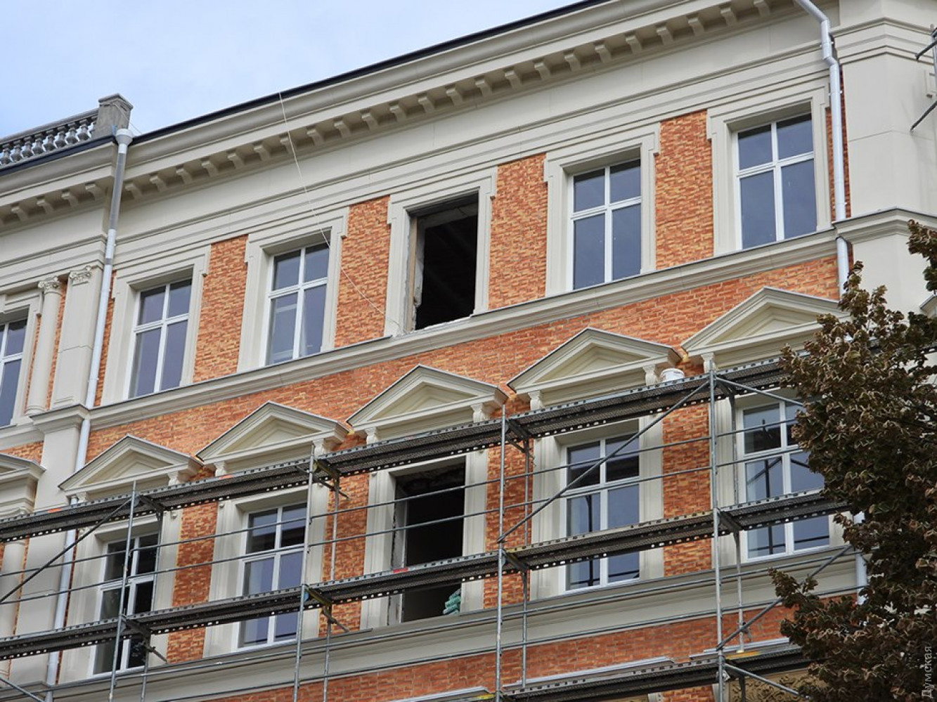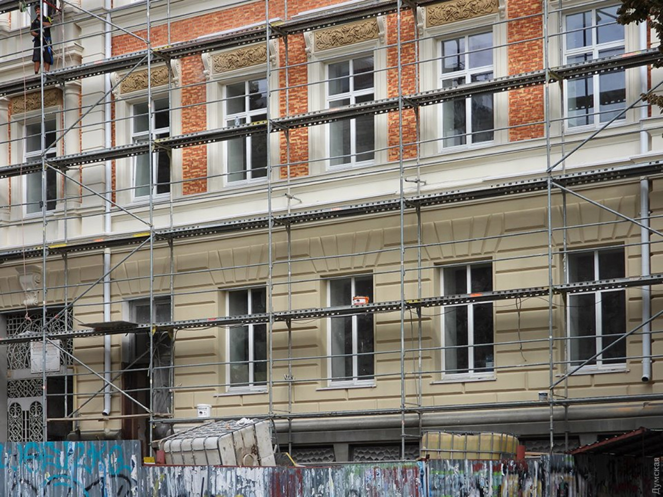 С прокурорского памятника архитектуры на Дерибасовской сняли леса: кирпичи фасада решили не закрашиватьРеставрация исторического здания Русского общества пароходства и торговли (РОПиТ) на Дерибасовской, 4 близится к концу. Вчера с дома, где размещаются подразделения областной прокуратуры, начали снимать леса. Реставраторы решили не закрашивать кирпичный фасад, как это сделали их советские предшественники, и, за исключением первого этажа, оставили кладку открытой. Чтобы защитить кирпичи от воздействия среды, их покрыли специальным составом. Напомним, несмотря на то, что здание РОПиТа принадлежит государству в лице Генпрокуратуры, ремонтируют его за счет городской громады. Первоначально на реставрацию выделили 42 миллиона гривен, однако смету увеличили на 20 миллионов. Начальник муниципального управления охраны памятников культурного наследия Павел Остапенко объяснил увеличение суммы внезапно возникшими расходами, однако так и не смог объяснить, на что именно будут потрачены эти деньги. Отметим, что из всех реставраций, которые ведутся сейчас в городе, эта уступает по цене лишь восстановлению дома Руссова. При этом изначально дом №4 по Дерибасовской не был аварийным и явно не требовал срочного и столь дорогостоящего ремонта. Но чего не сделаешь ради родной прокуратуры! Скажем, за наши с вами деньги внутренние поверхности стен будут покрыты декоративной венецианской штукатуркой и воском (1000 грн за килограмм). Кроме того, здание утеплят и оснастят системой кондиционирования. До революции в здании располагалась контора Русского общества пароходства и торговли. В советское время четвертый номер принадлежал Черноморскому морскому пароходству, в нем был радиоцентр ЧМП. Впоследствии его заполучил облсовет, который в 2013 году передал дом государству в лице Генеральной прокуратуры. Последнее и является сейчас собственником большинства помещений в здании общей площадью 3560 кв. м. Еще 550 квадратных метров в №4 принадлежат банку «Пивденный», который получил их по договору ипотеки от частного предприятия «Логос+». Речь идет о помещении ресторана Casa Nova на первом этаже, которое было заложено под кредит в полтора миллиона долларов в 2008 году. 550 квадратных метров принадлежат АО «Нависпед» из Варны. В 2015 году это помещение было передано в аренду ООО «ГлобалТрансПаром», а затем в субаренду на 10 лет иудейской религиозной общине «Хабад-Шомрей Шабос». Фото Евгения Сокольского СМЕРТЬ РОСІЙСЬКИМ ОКУПАНТАМ! Помітили помилку? Виділяйте слова з помилкою та натискайте control-enter