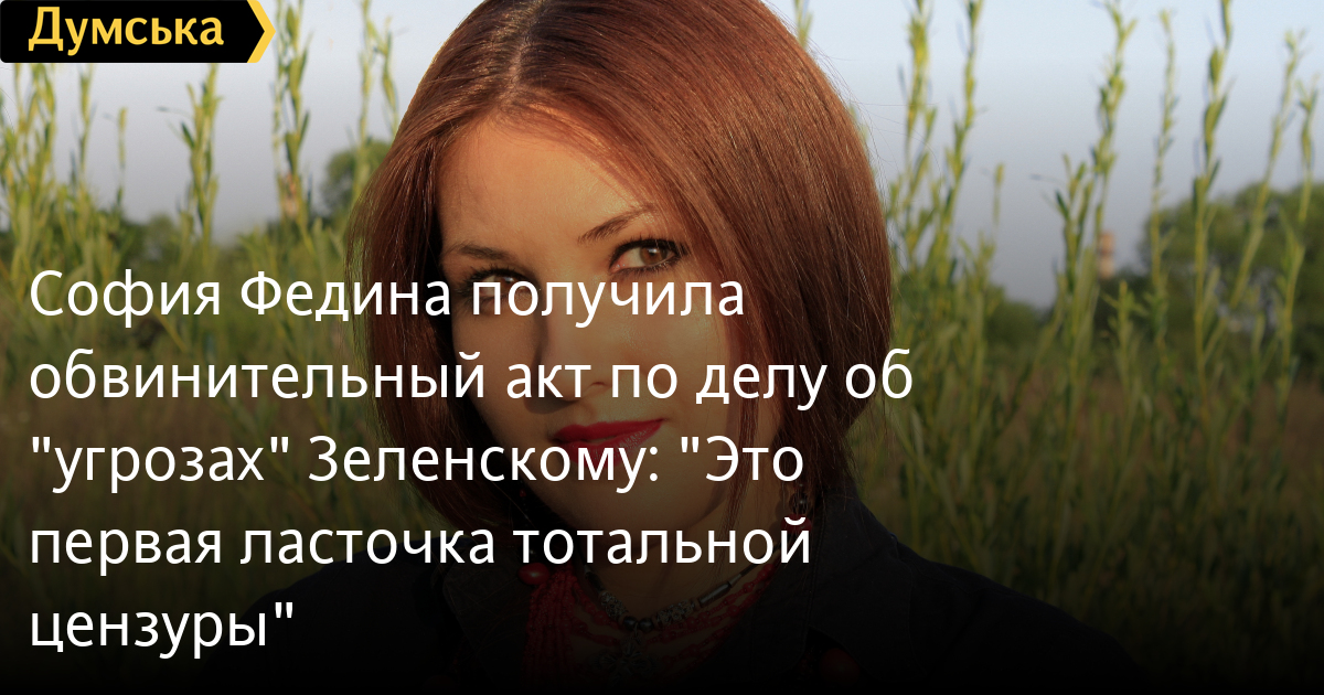 София Федина получила обвинительный акт по делу об «угрозах» Зеленскому: «Это первая ласточка тотальной цензуры»Народный депутат от политической партии «Европейская Солидарность» София Федина заявила, что ей вручили обвинительный акт по делу об «угрозах» президенту Владимиру Зеленскому. Об этом сообщает пресс-служба политсилы. По словам Федины, раз дело передали в суд, то в суд должен прийти потерпевший. «Он должен заявить, чем же мы его (Зеленского) так напугали, что ему было так страшно, и в чем в наших словах угроза его жизни», — заявила Федина. По мнению депутата, подобные дела — это шаг к тотальной цензуре. «Это первая ласточка тотальной цензуры и тотальному рождению тоталитаризма в нашей стране, когда у нас есть большой Зе, который боится большого Пу и в результате будет наказывать каждого, кто говорит правду о ситуации на передовой», — отметила народный депутат. Напомним, 10 марта Печерский райсуд Киева избрал Софии Федине меру пресечения в виде личного обязательства. Следователи ГБР направили в ГПУ проект сообщения о подозрении Софии Федине и волонтеру Марусе Звиробой из-за якобы «угроз» в адрес президента Владимира Зеленского. Поводом для этого стали их публичные рассуждения о том, что, если Зеленский будет хамить военным и добровольцам, то его дальнейшие поездки в зону проведения ООС могут стать опасными. СМЕРТЬ РОССИЙСКИМ ОККУПАНТАМ! Заметили ошибку? Выделяйте слова с ошибкой и нажимайте control-enter |