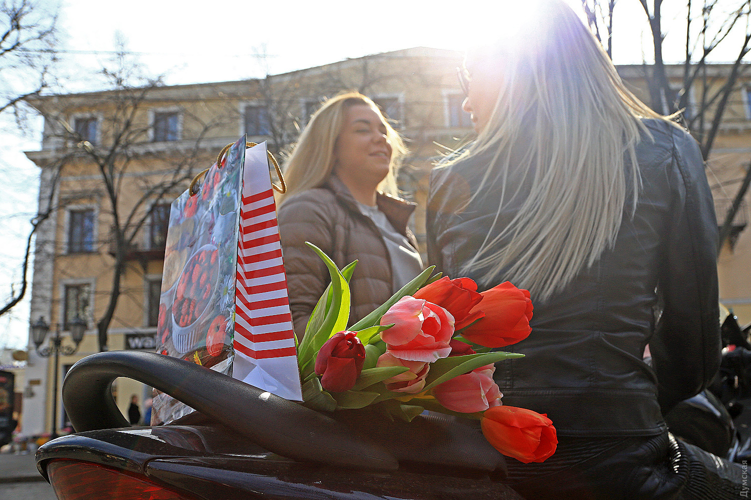 По-настоящему теплая весенняя погода нечасто радует одесситов в Международный женский день, 8 марта. Сегодня тысячи одесситов поздравляли друг друга с этим праздником. К счастью, цветочники хорошо подготовились и удовлетворили ажиотажный спрос не без выгоды для себя. Привоз напоминал разбуженный улей — на Екатерининской образовалась приличная пробка из-за потока мужчин, прибывших за цветами. Фото — Сергей Смоленцев СМЕРТЬ РОСІЙСЬКИМ ОКУПАНТАМ! Помітили помилку? Виділяйте слова з помилкою та натискайте control-enter |