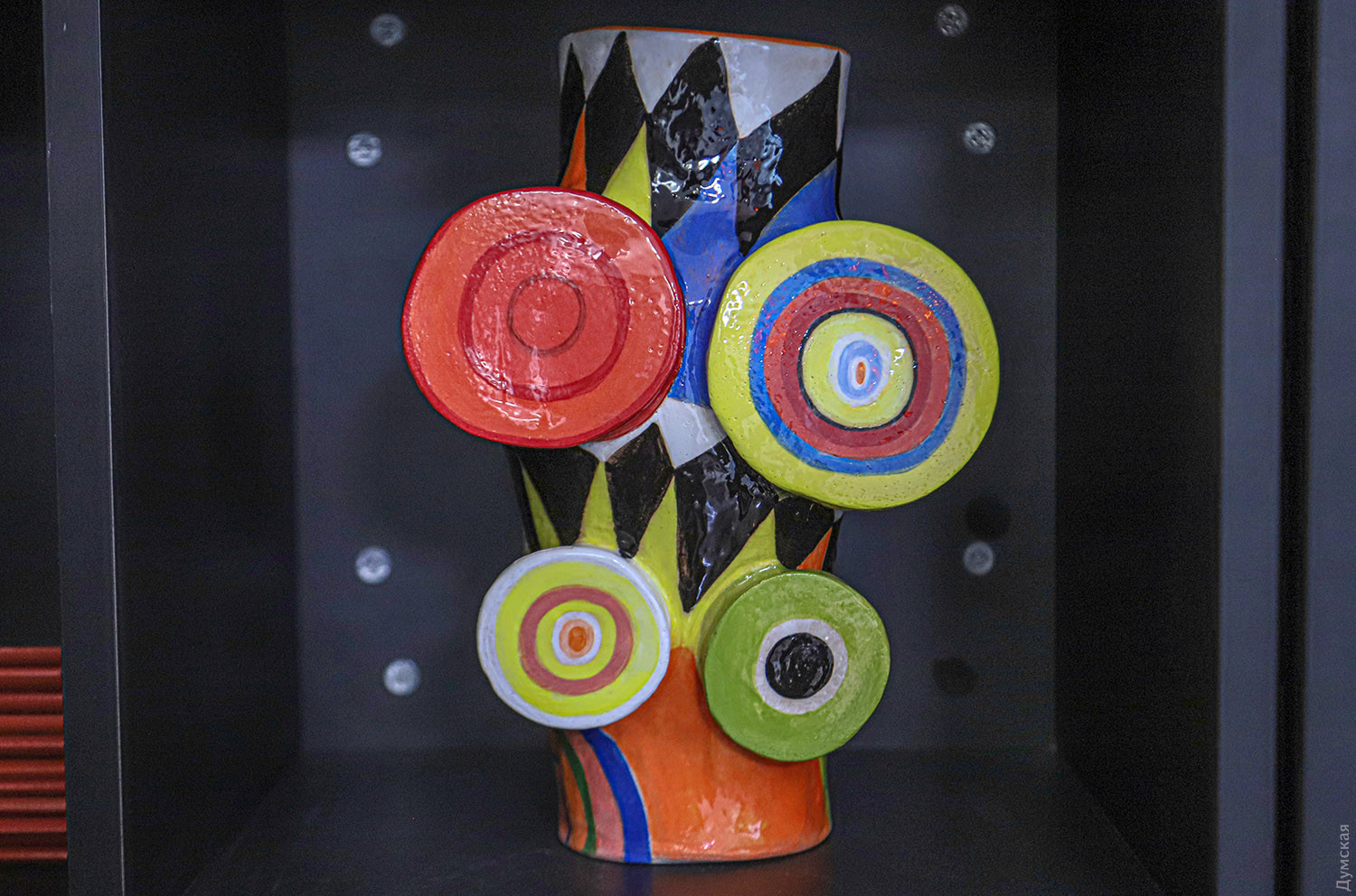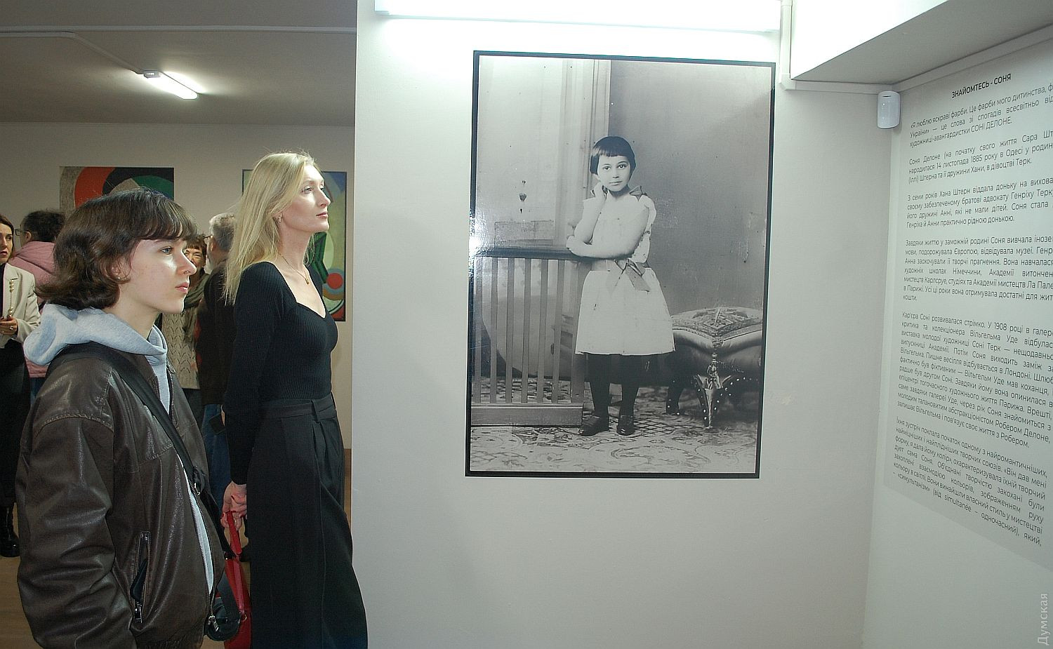 Виставкою «Ви знайомі з Сонею?» Музей сучасного мистецтва Одеси розпочав серію інформаційних виставок, присвячених 140-річчю відомої французької художниці, знаменитої одеситки Соні Делоне. Вже на вході відвідувачі потрапляють спочатку до кав’ярні «Делоне», оформленої в стилі іменинниці. А коли спускаються на мінус перший поверх, занурюються у привабливий світ сімейних фото та барвистих репродукцій (є й один оригінал). Шість років тому в Одесі проходила виставка «Соня Делоне: в пошуках ідентичності», про яку ми детально писали тут. На тій виставці були показані й експонати МСМО. Потім відбулася виставка в Києві, масштабніша. «Там були, схоже на те, всі роботи Соні Делоне, які є в Україні. Їх чи то сім, чи то вісім. Знов-таки, треба конкретизувати, що ми називаємо роботами. Вважається, що в Національному Художньому музеї України є дві її роботи. Хто не надто розбирається в мистецтві, пишуть: «дві картини». Ні, не дві картини, а, на жаль, тільки дві літографії. Дві чудові абстрактні літографії початку 1970-х років. Всесвітньо відомих мальовничих робіт Делоне в Україні, вірогідно, немає. В колекції засновника нашого музею Вадима Мороховського є офорт «Жінка біля ширми», відтворений на одній зі стін кафе. Другий наш експонат, що також знаходиться в колекції Мороховського, являє собою зразок декоративної тканини, створеної за ескізом Соні. Посуду, декорованого Делоне, в Україні також немає. Нещодавно наша колекція поповнилася ще одним оригіналом, наразі він знаходиться у Парижі. В залі присутня поки що репродукція», — повідомляє директор МСМО Семен Кантор. Мисткині пощастило народитися в Одесі, а також вчасно опинитися у Європі, де її таланти розквітли. «Соня навчалася в різних країнах, у Німеччині, у Франції, — каже кураторка виставки Анна Мороховська. – І в цілому її творча кар’єра розвивалася стрімко. В 1908 році критик та колекціонер Вільгельм Уде зробив у своїй галереї персональну виставку молодої мисткині Соні Терк, яка тільки-но закінчила академію. Згодом вона стала його дружиною, хоча це подружжя скоріше було фіктивним. Зате в неї з’явилася можливість потрапити до паризької художньої спільноти. Саме там вона познайомилася з Робером Делоне, а за рік і сама стала Сонею Делоне, коли вийшла за нього заміж. «Він дав мені форму, а я дала йому колір», — казала вона пізніше. Це був один з найромантичніших та найплідніших творчих дуетів світового сучасного мистецтва. Проживши 94 роки, Соня залишила помітний слід у мистецтві». Прикро, що Одеса зберігає легенди про Соню Золоту Ручку, а про іншу Соню, свою достойну дочку, знає мало. Час це виправити. Чим глибше занурюєшся в історію Соні Делоне, тим краще усвідомлюєш масштаб цієї людини. Навіть найпросунутіші наші арткритики, історики мистецтва недостатньо глибоко описують її життя. «Наприклад, я нещодавно читав одну статтю, і там промайнула фраза про те, що крім відомих робіт Соні Делоне по розпису корпусів автівок, був досвід створення міських афіш з підсвіткою, — додає Кантор. – Відомо, що вона успішно розписувала автівки, що існували у 20-30 роки різних марок, від «Бугатті» та «Сітроена» до таких, про які я, автомобіліст зі стажем, навіть ніколи не чув. Але, виходить, вона створювала й перші лайтбокси? Діапазон вражає». Соня була дуже продуктивною. Вона входить до десятки кращих жінок-художниць не ті