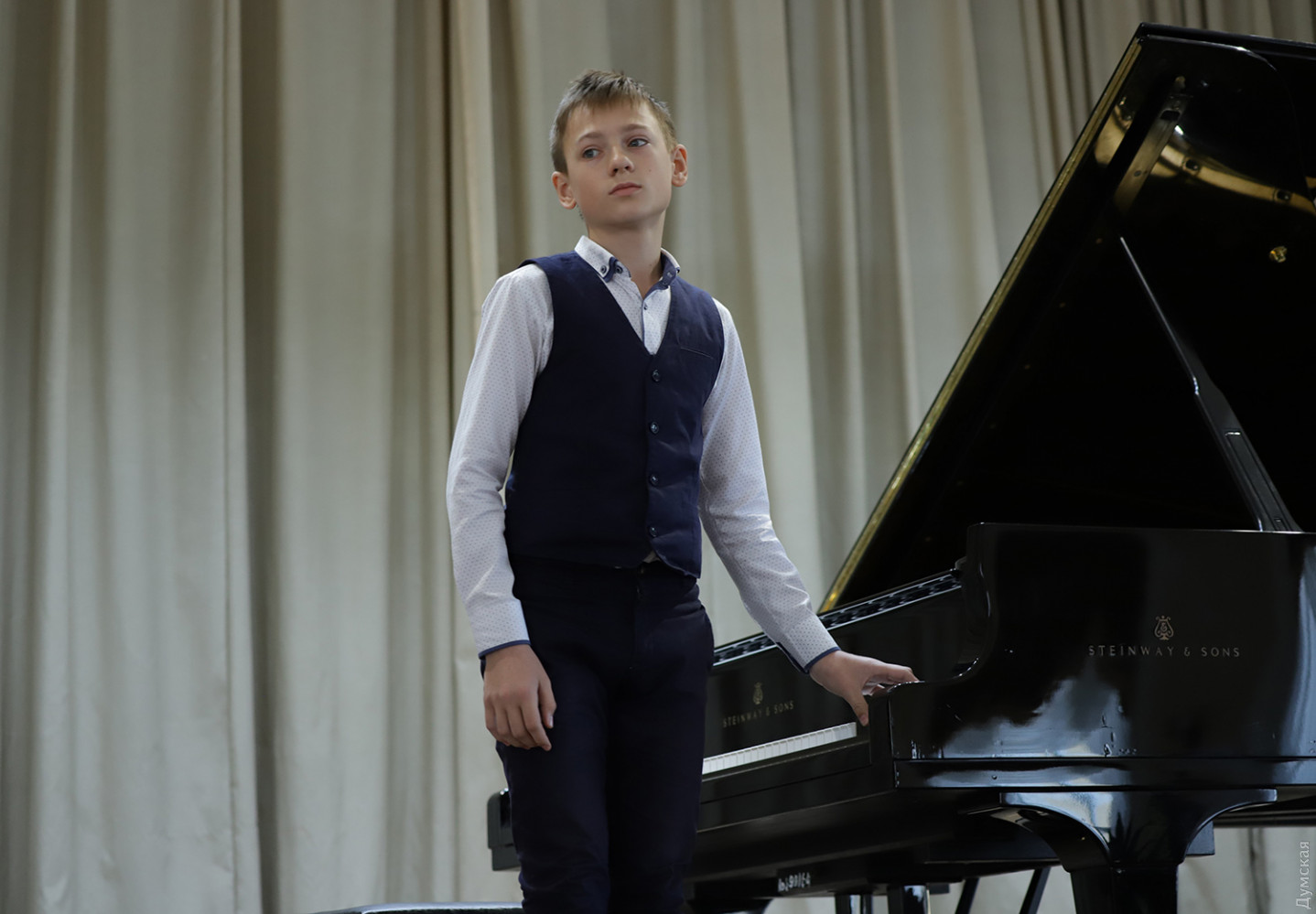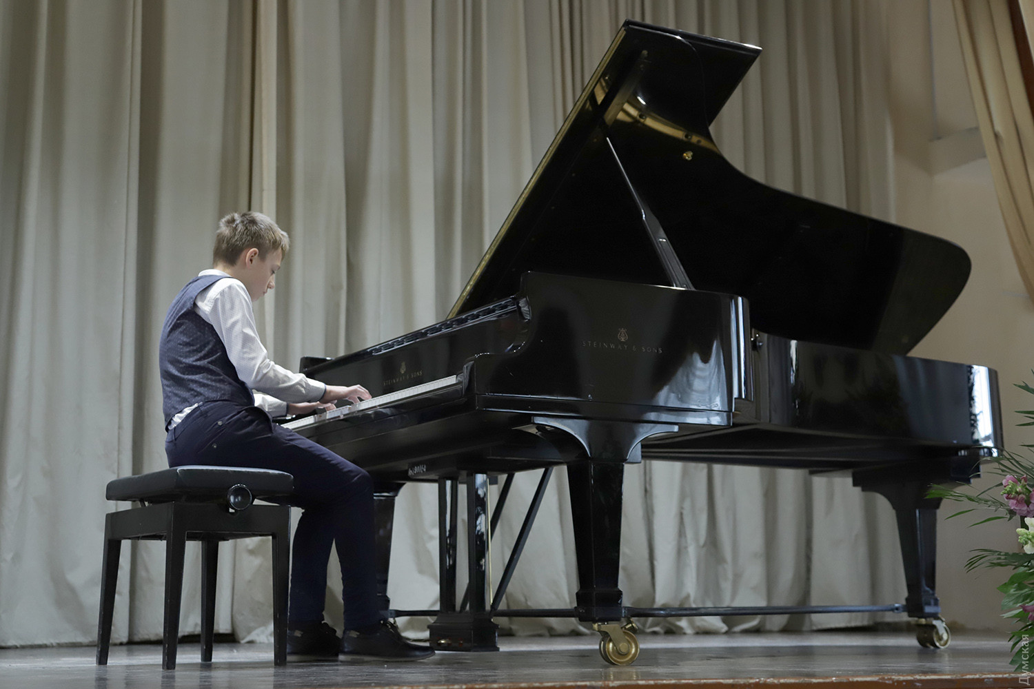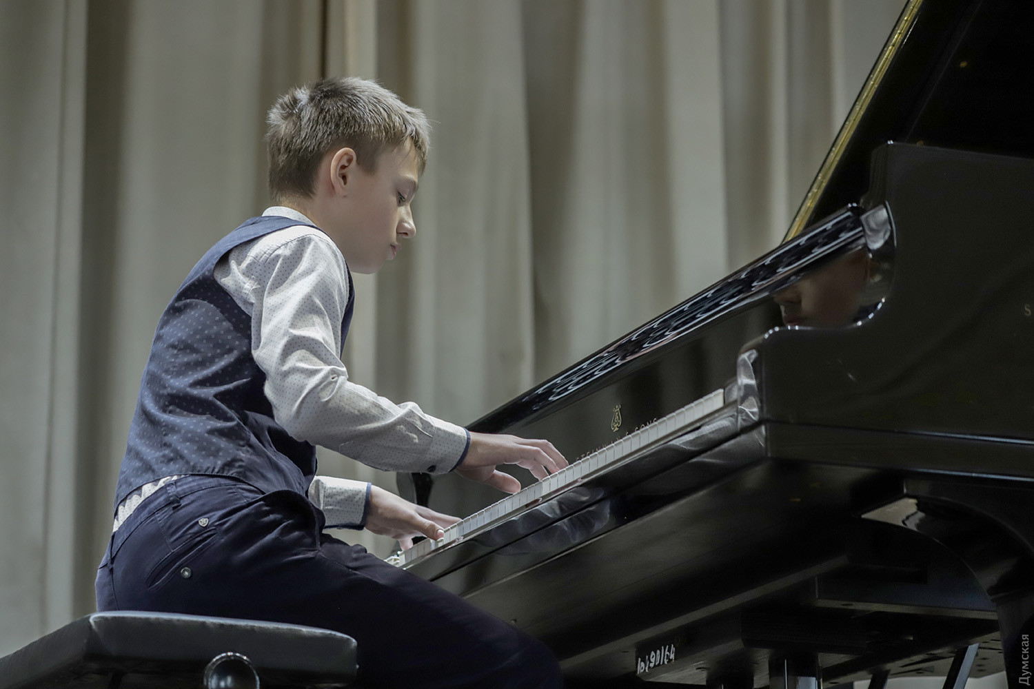 Соревнуются юные виртуозы: в Одессе стартовал пианистический конкурс памяти Серафимы МогилевскойВ рамках Седьмого международного фестиваля классической музыки Odessa Classics (сам фестиваль состоится в июне) начал свою работу Четвертый всеукраинский конкурс молодых пианистов имени Серафимы Могилевской. Конкурсные прослушивания проходят в Большом зале специализированной музыкальной школы имени Петра Столярского, 24 мая там же состоится церемония награждения лауреатов, передает корреспондент «Думской». «28 очень талантливых юных пианистов из всех регионов нашей страны начинают творческое соревнование, — говорит почетный президент конкурса народный артист Украины Алексей Ботвинов, глава фестиваля Odessa Classics. — Мы счастливы подержать будущее нашей культуры. А я лично — в очередной раз отдать свой долг памяти моему первому учителю — дорогой Серафиме Леонидовне Могилевской». Серафима Могилевская (1915-2016) — профессор Одесской консерватории (сегодня — Одесская национальная музыкальная академия), пианистка и педагог, воспитавшая много всемирно известных музыкантов, называвших ее своей «музыкальной мамой». Ее сын, Евгений Могилевский, работал профессором в Брюссельской консерватории. Внуки Александр и Максим Могилевские тоже стали пианистами и выступают с концертами в США и Европе. Последние годы жизни Серафима Могилевская провела в Кельне. Первый тур конкурса проходил в онлайн-формате, и вот, наконец, со всеми предосторожностями удалось собрать детей в конкурсном зале. «Рады быть в этой школе, где все пропитано историей, — произнес со сцены председатель жюри Юрий Кот. – Ощутить атмосферу тех событий, которые здесь происходили на протяжении десятилетий. Это первый конкурс после локдауна, и все мы согласимся, что музыка не может существовать вне концертных залов, вне связи между исполнителем и слушателем. Желаю участникам успеха, жюри – вдохновения, плодотворной работы». Напомним, что в данном конкурсе вступительного взноса для участников не существует, зато победителям присуждаются денежные призы: 10 тысяч гривен за первое место, 7 тысяч за второе и 5 тысяч за третье. Все прямые эфиры выступлений можно послушать на странице конкурса вот здесь. Автор — Ирэн Адлер, фото Владимира Андреева СМЕРТЬ РОСІЙСЬКИМ ОКУПАНТАМ! Помітили помилку? Виділяйте слова з помилкою та натискайте control-enter