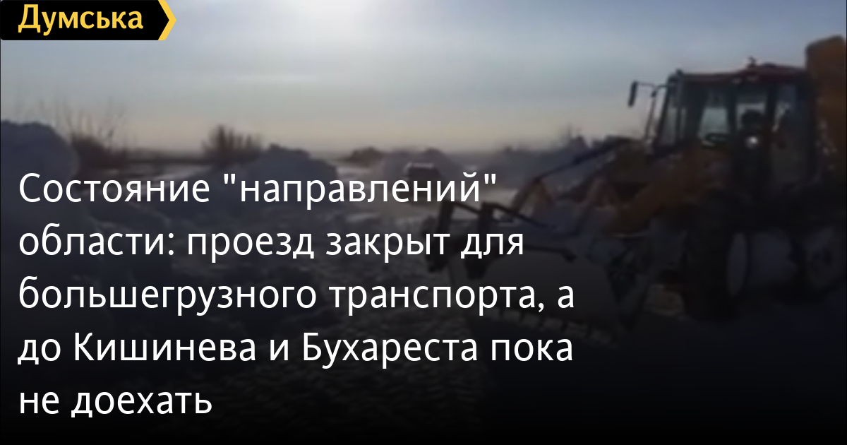 Состояние «направлений» области: проезд закрыт для большегрузного транспорта, а до Кишинева и Бухареста пока не доехатьВ спасательной службе информируют о состоянии дорог области по состоянию на утро 21 января. По данным Укравтодора, сложная ситуация пока остается в Одесской и Николаевской областях. Из-за снегопада все еще запрещено движение грузовых, большегрузных и крупногабаритных транспортных средств по всем автодорогам общего пользования области. Кроме этого закрыто движение любых транспортных средств по таким направлениям: - М-14 Одесса — Мелитополь — Новоазовск, км 17 + 555 - км 55 + 550. - М-13 Кировоград — Платоново (на Кишинев) - М-14 Одесса — Мелитополь — Новоазовск (на Таганрог) - М-15 Одесса — Рени (на Бухарест) - М-16 Одесса — Кучурган (на Кишинев) - Р-70 Одесса — Белгород-Днестровский — Монаши — / М-15 /; - Р-72 КПП «Староказачье» — Белгород-Днестровский. СМЕРТЬ РОССИЙСКИМ ОККУПАНТАМ! Заметили ошибку? Выделяйте слова с ошибкой и нажимайте control-enter |