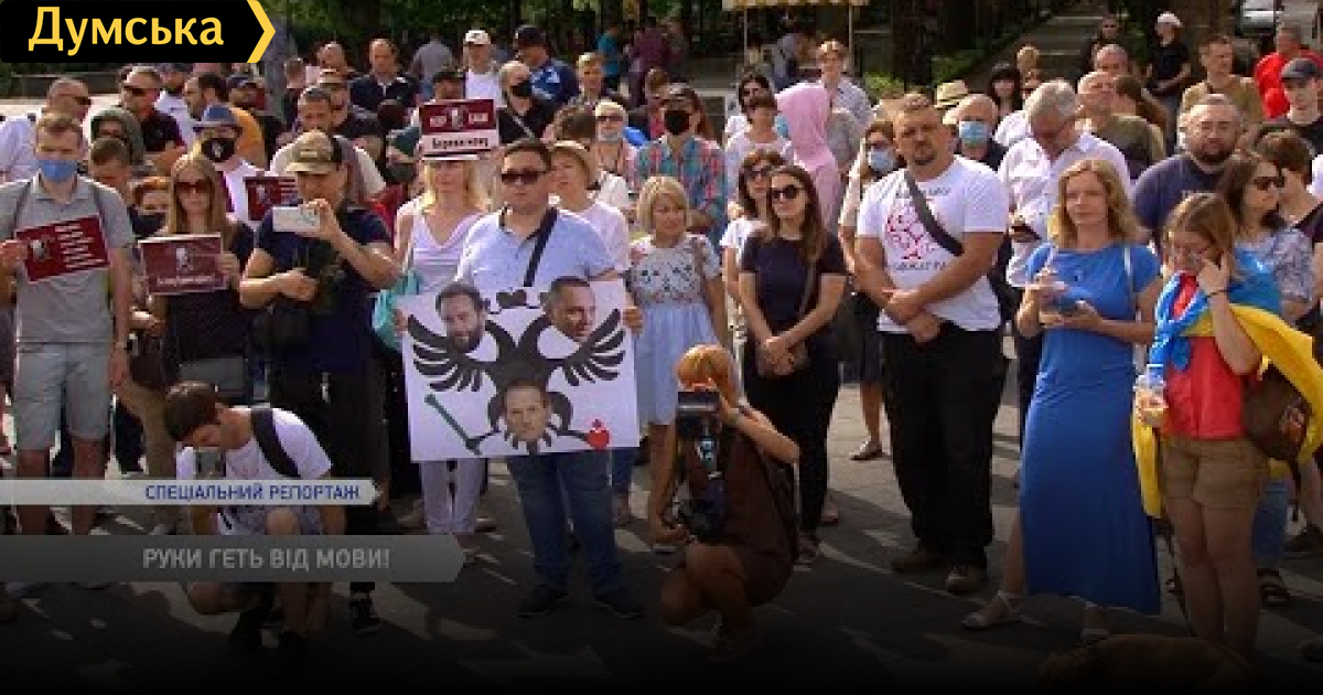 Митинг на Приморском бульваре. Одесситы выступили против скандального языкового законопроекта «Слуги народа». Активисты уверены, образование должно быть именно на государственном языке