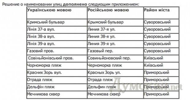 Как мы писали ранее, Одесский городской совет — «с целью урегулирования и систематизации наименований улиц города, охраны законных прав и интересов территориальной громады» —  своим решением внес ряд изменений в решение горсовета № 4858- ІV от 09.11.2005 года «О наименовании улиц, переулков, проспектов, площадей, парков, скверов, мостов и других сооружений, расположенных на территории г. Одессы».