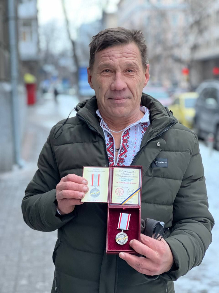 Рятував дітей після прильоту російської ракети: президент нагородив одеського комунальникаМедаль «За врятоване життя» вручив одеському комунальнику Валерію Лукашову президент України Володимир Зеленський. Як повідомили у пресслужбі мерії, чоловік опинився одним із перших на місці прильоту в триповерховий будинок на вул. Картамишевській 29 грудня минулого року. Будинок горів, а мешканці не могли самостійно вибратися, оскільки двері були пошкоджені, а вихід заблокований. «Ризикуючи власним життям, Валерій Лукашов почав евакуювати дітей, яких батьки передавали йому через вікна. А пізніше допоміг рятувальникам розблокувати вихід для евакуації людей із підвалу будинку», — зазначили в одеській мерії. Валерій Лукашов працює слюсарем-сантехніком 3-го розряду виробничої дільниці №3 ЖКС «Хмельницький» понад десять років. Помітили помилку? Виділяйте слова з помилкою та натискайте control-enter |