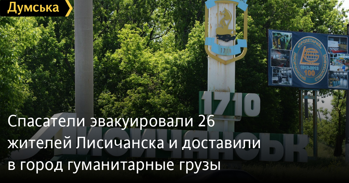 Спасатели эвакуировали 26 жителей Лисичанска и доставили в город гуманитарные грузыСотрудники ГСЧС продолжают на бронеавтомобилях вывозить из зоны боевых действий мирных жителей Лисичанска. По данным ведомства, вчера спасатели эвакуировали из города 26 человек. Во время рейса также были доставлены 3,5 тонны гуманитарных грузов. СМЕРТЬ РОССИЙСКИМ ОККУПАНТАМ! Заметили ошибку? Выделяйте слова с ошибкой и нажимайте control-enter |