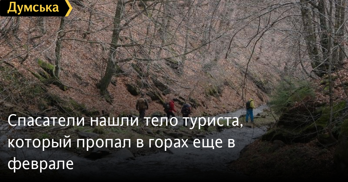 Сегодня, 27 апреля, в 16:00 спасатели обнаружили тело туриста из Киева, который исчез три месяца назад в Карпатах. Об этом сообщили в пресс-службе ГСЧС. Погибший был найден в ущелье у ручья у подножия горы Магура-Жиде. После проведения правоохранителями первоочередных следственных действий, тело мужчины будет транспортировано в село Березники Закарпатской области. Спасатели напомнили, что в ночь на 14 февраля вблизи села Березники Свалявского района на склоне горы Гемба во время катания на лыжах заблудились двое киевлян. Из-за плохой видимости они потеряли друг друга из виду. Уже в 11:30 14 февраля поисковая группа ГСЧС нашла одного туриста, поиски же второго продолжались 21 день — до 5 марта. Мужчину искали даже с помощью вертолета. Затем, когда сошел снег спасатели возобновили поиски и сегодня нашли тело погибшего. СМЕРТЬ РОССИЙСКИМ ОККУПАНТАМ! Заметили ошибку? Выделяйте слова с ошибкой и нажимайте control-enter |