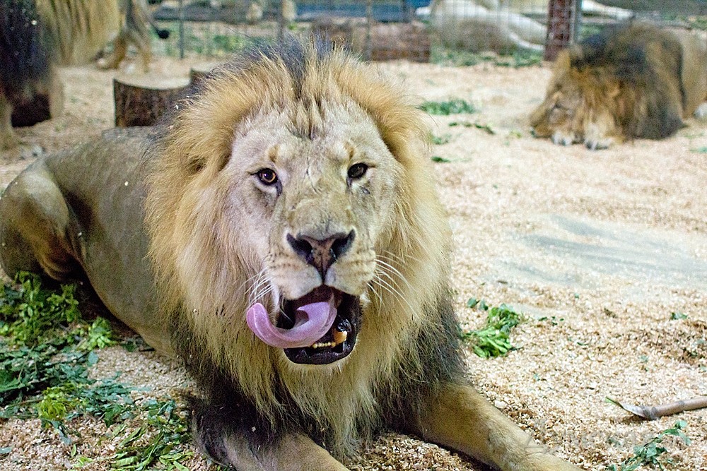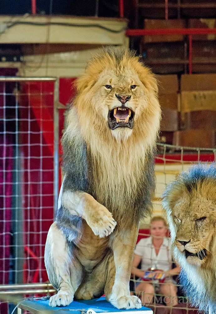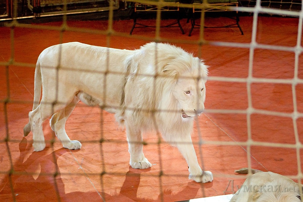 Сейчас в труппе артиста двенадцать львов, все самцы. На арену выходит десятка взрослых, в том числе два редчайших белых льва из ЮАР - подарок директора Ялтинского зоопарка Олега Зубкова. Два полуторагодовалых львенка пока тренируются.