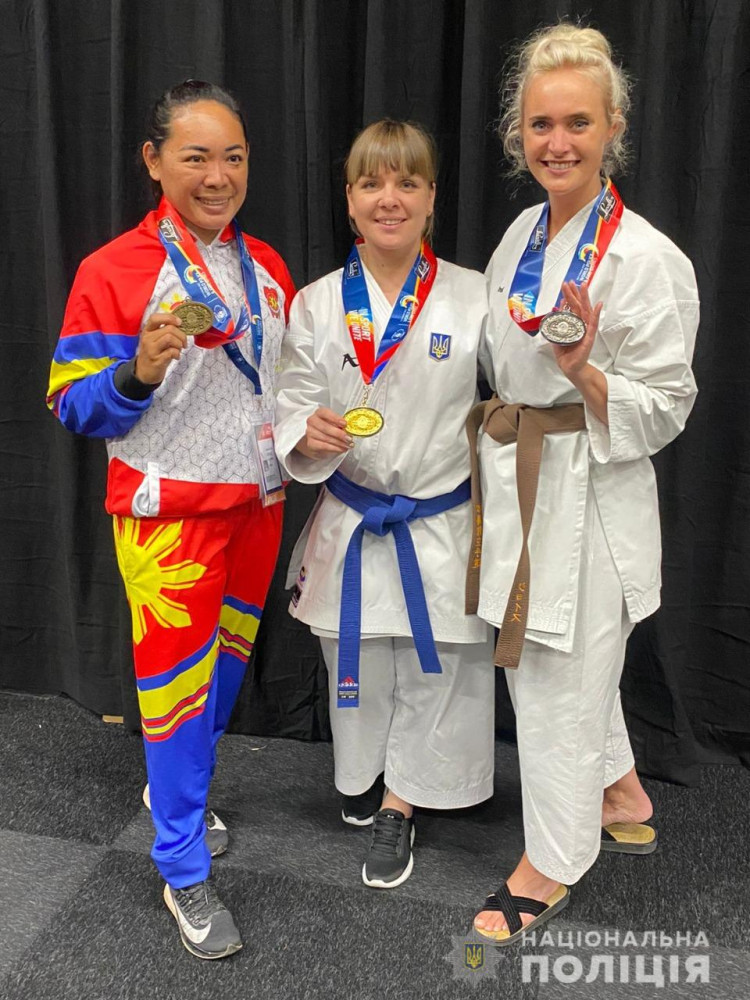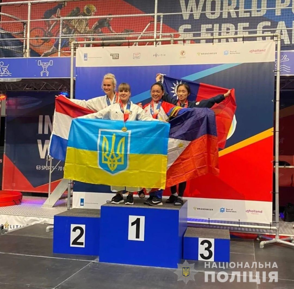 Спецпризначенка-каратистка з Одещини виборола золото та срібло на Всесвітніх іграх поліцейських та пожежників (фото, відео)Уродженка Одещини лейтенантка поліції Катерина Синенко виборола одразу дві нагороди: золото та срібло на The World Police & Fire Games 2022, що в ці дні триває в Роттердамі. Майстер спорту України, спортсменка Одеської федерації карате та клубу «Захист» виборола I особисте місце у категорії ката та II місце у куміте до 60 кг (поєдинки), повідомляє пресслужба Національної поліції. Катерина пішла по стопах свого батька й вже вісім років служить в батальйоні поліції особливого призначення. «Мила та тендітна зовні дівчина працює в батальйоні поліції особливого призначення і на рівні з кремезними чоловіками виконує бойові завдання, — наголошує командир батальйону, полковник поліції Микола Паньків. — Разом з ними бере участь у контрдиверсійних заходах з метою виявлення диверсійно-розвідувальних груп і колаборантів, охороні високопосадових осіб та членів їхніх родин».