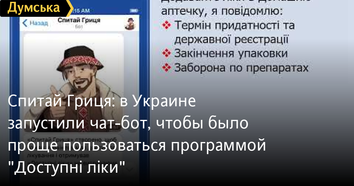 «Спитай Гриця»: в Украине запустили чат-бот, чтобы было проще пользоваться программой «Доступні ліки»Чат-бот «Спитай Гриця» для помощи пациентам, получающим препараты для лечения по программе «Доступні ліки» запустила в Украине общественная организация «Ліки Контроль» при поддержке Минздрава и НСЗУ. Как сообщает пресс-центр МОЗ, с его помощью можно узнать, какие препараты подпадают под государственную программу, а также кому она доступна. Также бот помогает организовать домашнюю аптечку — будет напоминать о сроках давности, компонентах и т.д. Кроме того, с его помощью можно узнать, в какой ближайшей аптеке есть лекарство по программе. Чатбот работает на платформах Viber и Telegram. «Доступні ліки» — программа возмещения стоимости лекарств. В настоящее время она охватывает 354 препарата для лечения сердечно-сосудистых заболеваний, профилактики инфарктов и инсультов, бронхиальной астмы, сахарного диабета II типа, несахарного диабета, расстройств психики и поведения, эпилепсии. СМЕРТЬ РОССИЙСКИМ ОККУПАНТАМ! Заметили ошибку? Выделяйте слова с ошибкой и нажимайте control-enter |