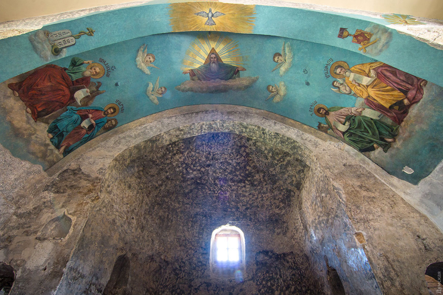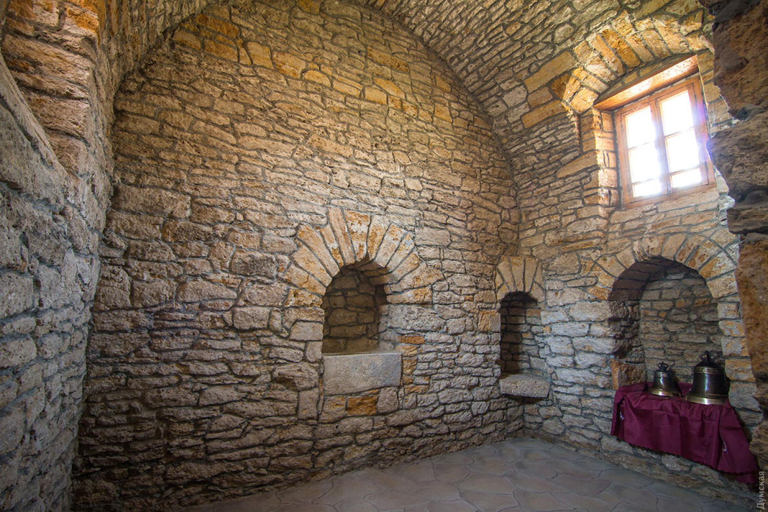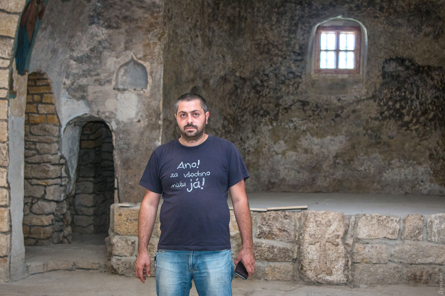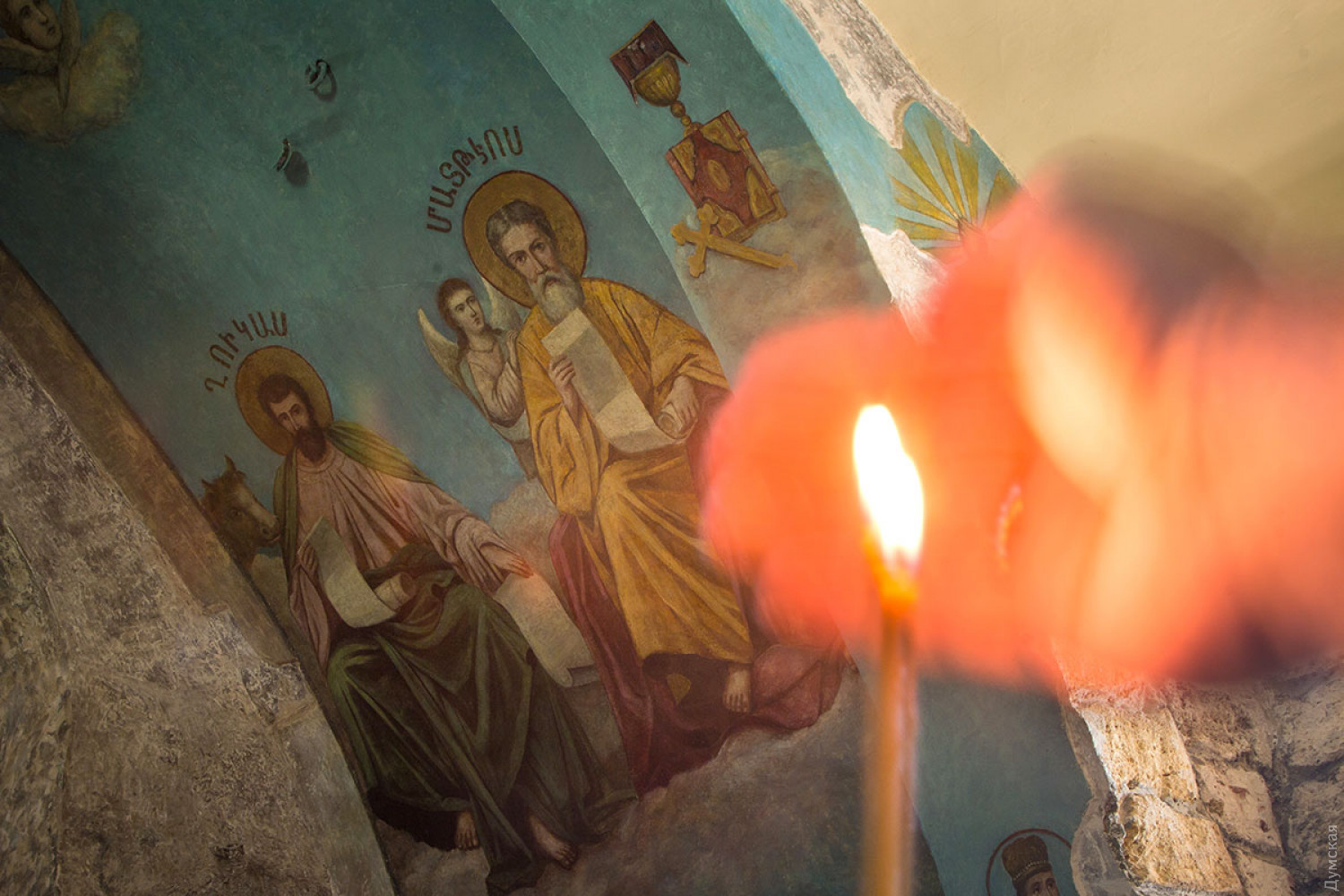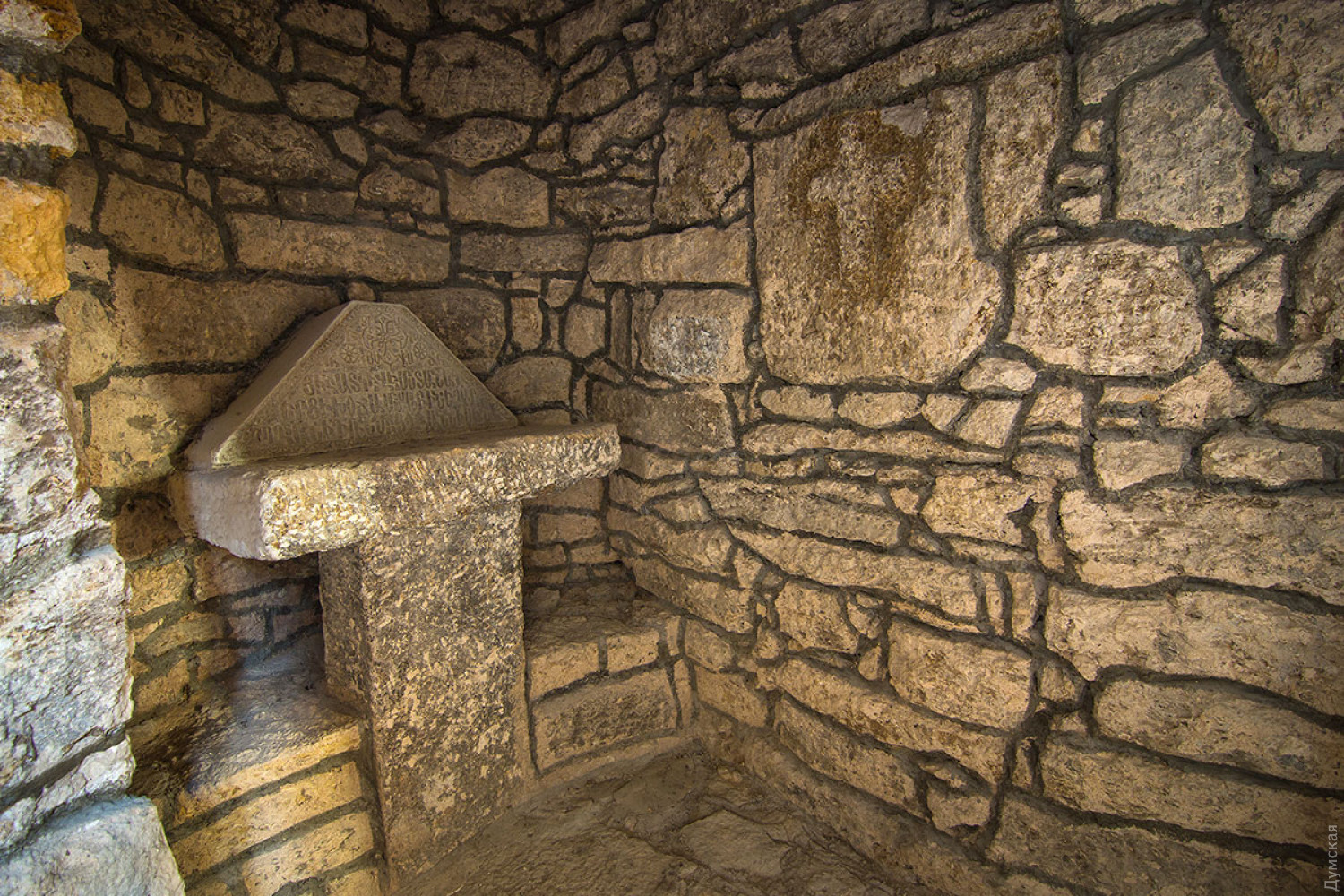Споры о возрасте, советский вандализм и загадочные хачкары: как в Аккермане один из древнейших храмов области восстанавливаютНа звание древнейшего культового сооружения (и вообще старейшего существующего до сих пор здания) Одесской области претендует всего несколько построек. Три из них находятся в древнем Аккермане: греческая церковь Иоанна Предтечи на улице Леона Попова, подземная церковь Иоанна Сучавского на Шабской и Армянская церковь Успения Пресвятой Богородицы на Кутузова. Последнюю вернули армянской общине совсем недавно, в 2012 году, благодаря усилиям иеромонаха Левона Гуляна и Союза армян Украины. Тогда же началось восстановление храма, который полвека использовался не по назначению. Работы продолжаются по сей день. Корреспондент «Думской» побывал в древней церкви. Всего в двух кварталах от величественной Аккерманской крепости, на пересечении древних улиц, за ажурным кованым забором стоит приземистое здание. Треугольная покатая крыша почти касается земли, а стены, выложенные из бутового камня, словно спрессованы самим временем. На территории копошатся рабочие. Они делают административную пристройку возле главных ворот участка. Самих ворот пока нет, их реставрируют отдельно. Представить, как будет выглядеть вход с улицы Греческой, можно на примере входа с улицы Кутузова — небольшая кованая калитка в арке из бутового камня и ракушечника. Мастера говорят, что следуют европейской традиции реставрации и весь новодел нарочито современен, потому что они не пытаются в точности подделать аутентичные части. Потомки должны точно знать, когда что было создано или воссоздано. Недалеко от главного входа выложены найденные на территории надгробные плиты. Первые две в советское время вмонтировали в здание в качестве карнизов. Когда-то двор армянской церкви был в несколько раз больше современного участка и примыкал к древнему кладбищу в армянском квартале города. Сейчас часть территории занимают частные владения аккерманцев и детский садик. Небольшую экскурсию по территории храма нам провел глава историко-культурного комитета Союза армян Украины, куратор восстановления святыни Давид Давтян. Он профессиональный историк и кандидат наук. По словам ученого, одной из главных проблем была вода, которая буквально лилась по стенам древней церкви. «Вся влага с территории стекала во внутренние помещения, за алтарной апсидой было небольшое озеро. Мы сделали водоотвод на всей территории и только после этого приступили к восстановлению самого здания», — говорит наш спутник. Следующей задачей было освободить храм от советского наследия. Именно советский период, говорит Давид, нанес памятнику архитектуры максимально возможный урон. «После закрытия помещение церкви служило музеем атеизма и планетарием, в последнее время тут базировалась археологическая экспедиция, — рассказывает историк. — Здание оштукатурили, а живопись внутри просто побелили. Между образами клали проводку, выключатели монтировали прямо на лица святых!». Реставраторы освободили здание и окружающий территорию забор от штукатурки, дали возможность древнему камню дышать, обработав его специальными гидрофобизаторами. Восстановили кровлю, сохранив старые перекрытия, выполненные из дранки, заменили все водосточные трубы, для чего скопировали сохранивш