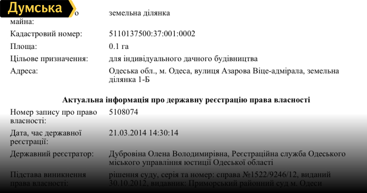 Редакция «Думской» решила проверить, как обстоят дела с возвращением городу 46 соток на приморских склонах в Отраде, которые пытался украсть известный народный хозяйственник. Напомним, в 2011 году один из предыдущих мэров Одессы, обманув горсовет, добился бесплатной передачи своим подставным лицам 5 участков в 100 метрах от моря. После этого разразился страшный скандал, а сам мэр даже попал в больницу. Сотки пришлось вернуть — муниципалитет подал в суд с требованием отменить госакты на землю. Однако злые языки поговаривали, что документы бедолага-мэр оставил у себя, и земля все равно принадлежит ему.