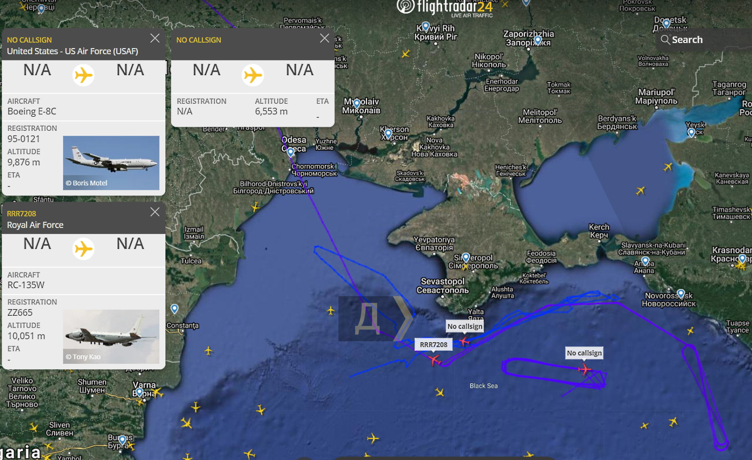 Позже над центральной частью появился самолет управления и целеуказания Boeing E-8C, вылетевший с авиабазы Рамштайн, что в Германии.