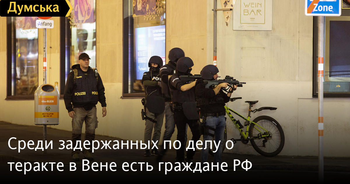 Австрийские полицейские задержали 14 иностранцев по делу о теракте в Вене, который произошел 2 ноября. Среди них есть граждане России. Об этом сообщил начальник полиции австрийской столицы Герхард Пюстль, передает РБК. Он отметил, что некоторые из задержанных в рамках спецоперации имеют двойное гражданство. Среди них есть граждане Российской Федерации, Турции, Бангладеша и Северной Македонии. Всех их подозревают в участии в террористической организации. Ранее посол России в Вене Дмитрий Любинский заявил, что среди задержанных по делу есть выходцы с Северного Кавказа, но местная полиция этого не подтвердила. В МВД Австрии признались, что перед терактом получили от коллег из Словакии информацию о террористе албанского происхождения Куйтиме. Однако, спецслужбы проигнорировали эти сведения из-за «ошибок в коммуникации». Напомним, вечером 2 ноября в центре Вены произошла стрельба сразу в шести местах. Жертвами теракта стали пять человек, еще 22 получили ранения. СМЕРТЬ РОССИЙСКИМ ОККУПАНТАМ! Заметили ошибку? Выделяйте слова с ошибкой и нажимайте control-enter |