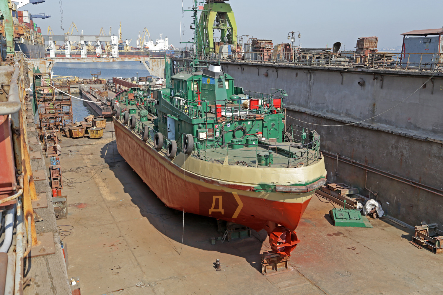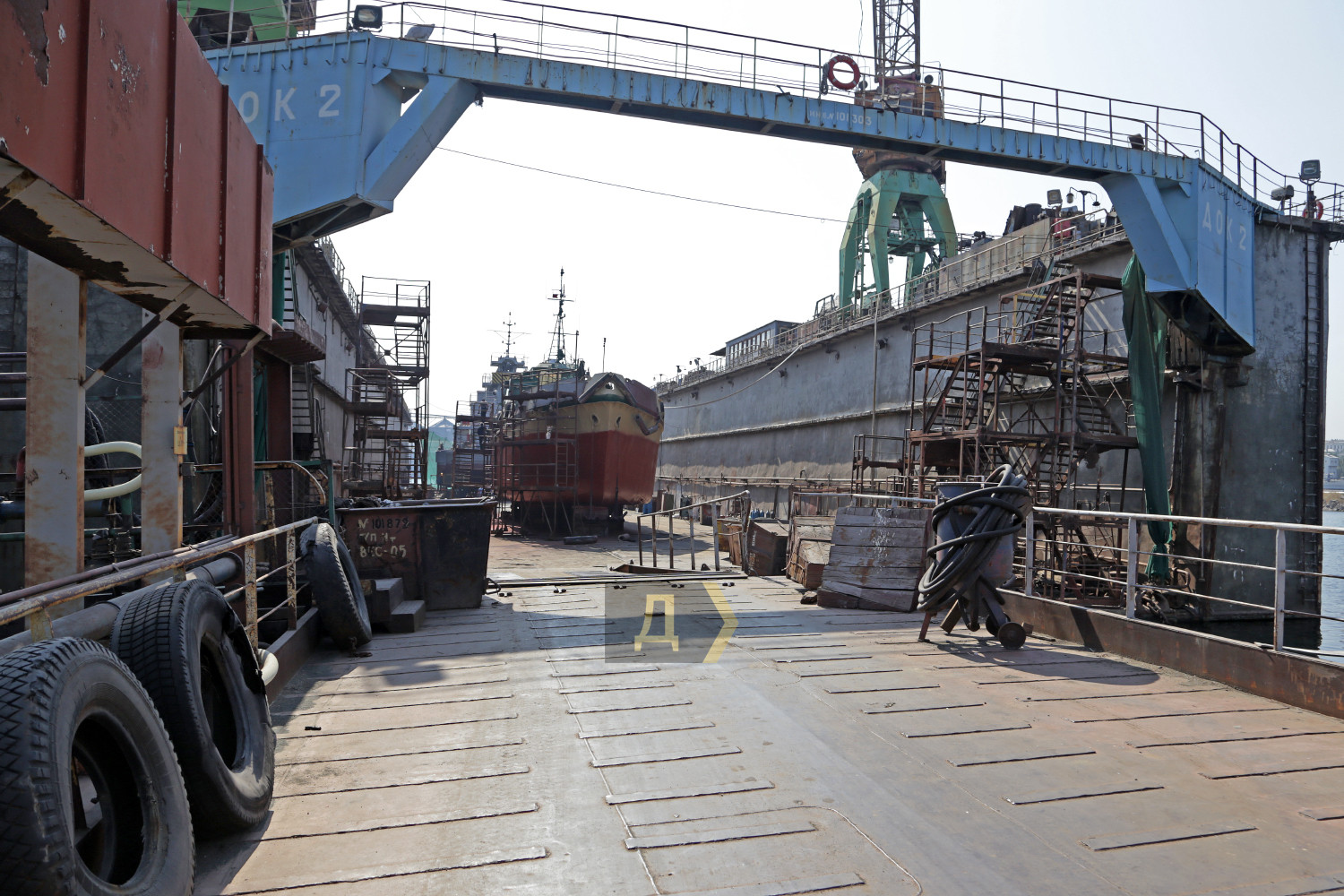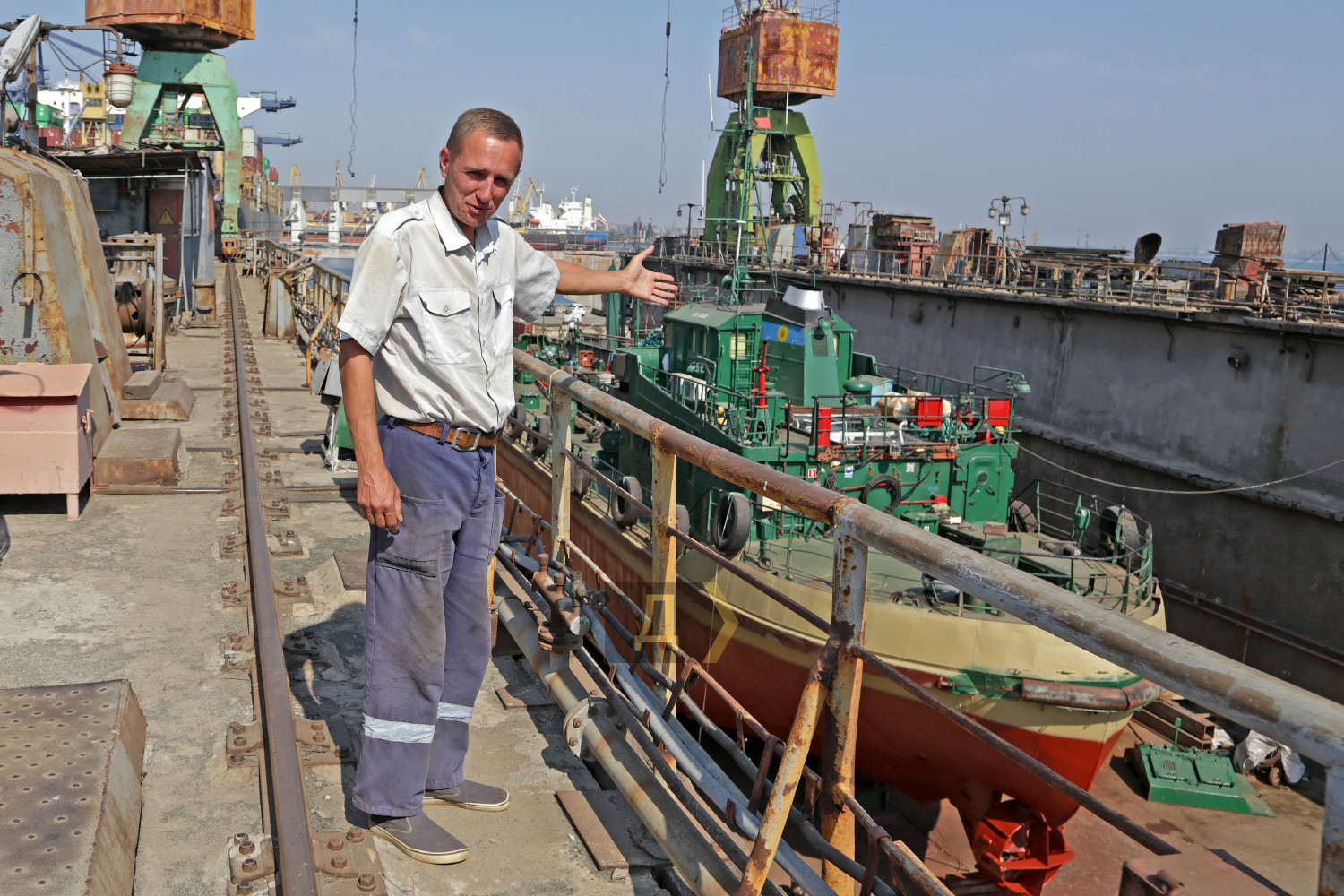В июле-августе этого года судоверфь «Украина», структурное подразделение государственного предприятия «Одесский морской торговый порт», впервые за много лет своего существования не только вышла на порог безубыточности, но и получила небольшую прибыль. Корреспондент «Думской» отправился в порт, чтобы посетить это предприятие. Главный источник прибыли верфи — старенький док №2, куда ставят в ремонт не только небольшие суда, но и корабли Военно-морских сил Украины. Недавно, в мае-июне этого года, предприятие модернизировало корпуса и переустанавливало водометные движители на десантно-штурмовых катерах типа «Кентавр» проекта 58155. Эти единицы до сих пор не приняты в состав национального флота. Их продолжают дорабатывать, испытывать и уточнять ходовые характеристики. Сегодня в плавдоке ремонтируют суда портофлота – сборщик льяльных вод ПС-368 и небольшой плавкран ПК 4/63. По словам заместителя директора ГП «ОМТП» Юрия Ивлева, в целом судоверфь загружена работой, и место в доке расписано на несколько месяцев вперед. «Мы провели большую работу по поиску клиентов, поэтому док не пустует, – пояснил руководитель. — В основном это небольшие суда вспомогательного флота, но мы не стоим на месте, ведем переговоры о ремонте сухогрузов типа «Волго-Балт», «Волго-Дон» и других, ведь док позволяет поднимать суда водоизмещением до шести тысяч тонн». Док №2 заложили в далеком 1948 году и ввели в эксплуатацию четырьмя годами позже. И хотя в 2022 году ему стукнет 70 лет, никто не собирается его списывать. Секрет долголетия этого специального судна прост – оно сделано из бетона, поэтому слабо подвержено коррозии. Длина дока 130 метров, ширина по внутренним стенкам 22,5 метра. Шесть внутренних понтонов обслуживаются водоотливными насосами производительностью две тысячи кубометров воды в час, благодаря чему док может поднимать для ремонта большие суда. Для вспомогательных работ есть два крана, грузоподъемностью по пять тонн каждый. Начальником дока №2, так называемым докмейстером, работает Сергей Соколов. К слову, это довольно редкая профессия — специалистов по постановке судов в Украине очень мало. По словам Сергея, основным премудростям его научил ныне покойный «мастер» Николай Якубовский. «Чтобы получить диплом докмейстера, надо отучиться на специальных курсах, но они очень далеки от реальной работы, – поясняет Соколов. — В нашем деле важна практика, это достаточно сложный процесс, надо не спеша все рассчитать. Бывали случаи, когда мы ставили в док большие суда на пределе его возможностей, расстояние от бортов до стенок дока было не более полуметра. Это очень большая ответственность, все надо делать аккуратно». Теоретически судоверфь «Украина» может сделать любую работу по ремонту, однако успешному решению производственных задач мешают недостатки, присущие всем украинским госпредприятиям – застарелая система планирования и длительное согласование проектов. Многие годы верфь была убыточной, на поддержание производственных фондов требовались огромные деньги, которые ложились тяжелым бременем на финансовую отчетность порта. Сегодня на верфи, расположенной на площади 75 тысяч квадратных метров, работает всего около сотни человек. В больших производственных цехах стоят старые советские станки, в основном произведенные в 1960-70-х годах. Но есть 