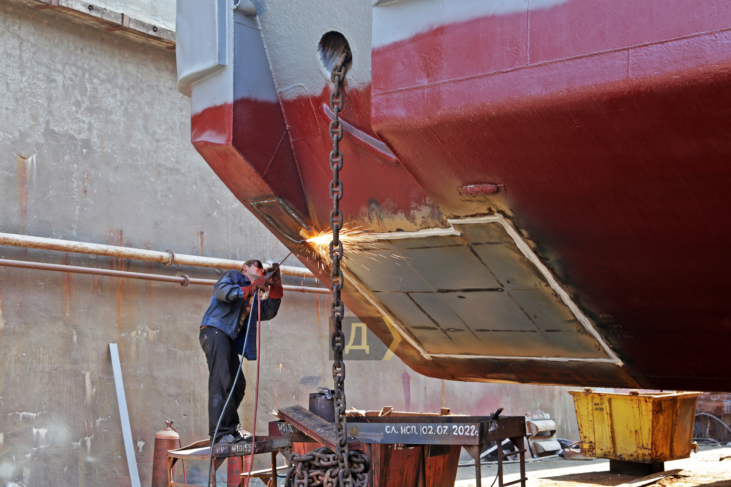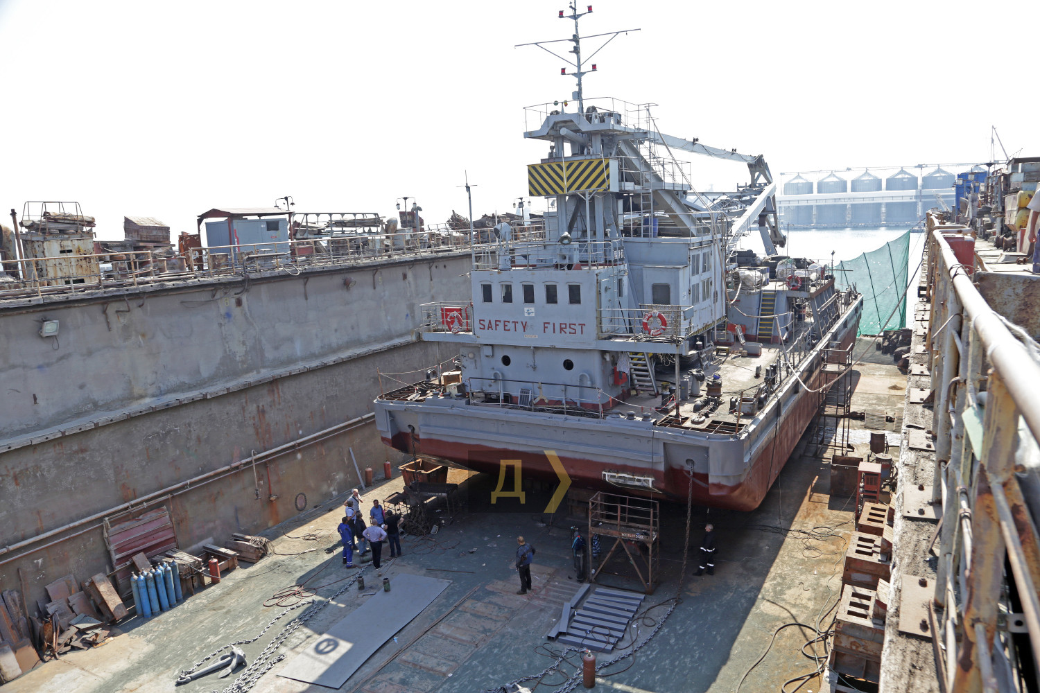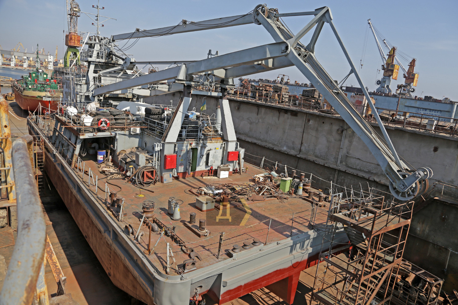 В июле-августе этого года судоверфь «Украина», структурное подразделение государственного предприятия «Одесский морской торговый порт», впервые за много лет своего существования не только вышла на порог безубыточности, но и получила небольшую прибыль. Корреспондент «Думской» отправился в порт, чтобы посетить это предприятие. Главный источник прибыли верфи — старенький док №2, куда ставят в ремонт не только небольшие суда, но и корабли Военно-морских сил Украины. Недавно, в мае-июне этого года, предприятие модернизировало корпуса и переустанавливало водометные движители на десантно-штурмовых катерах типа «Кентавр» проекта 58155. Эти единицы до сих пор не приняты в состав национального флота. Их продолжают дорабатывать, испытывать и уточнять ходовые характеристики. Сегодня в плавдоке ремонтируют суда портофлота – сборщик льяльных вод ПС-368 и небольшой плавкран ПК 4/63. По словам заместителя директора ГП «ОМТП» Юрия Ивлева, в целом судоверфь загружена работой, и место в доке расписано на несколько месяцев вперед. «Мы провели большую работу по поиску клиентов, поэтому док не пустует, – пояснил руководитель. — В основном это небольшие суда вспомогательного флота, но мы не стоим на месте, ведем переговоры о ремонте сухогрузов типа «Волго-Балт», «Волго-Дон» и других, ведь док позволяет поднимать суда водоизмещением до шести тысяч тонн». Док №2 заложили в далеком 1948 году и ввели в эксплуатацию четырьмя годами позже. И хотя в 2022 году ему стукнет 70 лет, никто не собирается его списывать. Секрет долголетия этого специального судна прост – оно сделано из бетона, поэтому слабо подвержено коррозии. Длина дока 130 метров, ширина по внутренним стенкам 22,5 метра. Шесть внутренних понтонов обслуживаются водоотливными насосами производительностью две тысячи кубометров воды в час, благодаря чему док может поднимать для ремонта большие суда. Для вспомогательных работ есть два крана, грузоподъемностью по пять тонн каждый. Начальником дока №2, так называемым докмейстером, работает Сергей Соколов. К слову, это довольно редкая профессия — специалистов по постановке судов в Украине очень мало. По словам Сергея, основным премудростям его научил ныне покойный «мастер» Николай Якубовский. «Чтобы получить диплом докмейстера, надо отучиться на специальных курсах, но они очень далеки от реальной работы, – поясняет Соколов. — В нашем деле важна практика, это достаточно сложный процесс, надо не спеша все рассчитать. Бывали случаи, когда мы ставили в док большие суда на пределе его возможностей, расстояние от бортов до стенок дока было не более полуметра. Это очень большая ответственность, все надо делать аккуратно». Теоретически судоверфь «Украина» может сделать любую работу по ремонту, однако успешному решению производственных задач мешают недостатки, присущие всем украинским госпредприятиям – застарелая система планирования и длительное согласование проектов. Многие годы верфь была убыточной, на поддержание производственных фондов требовались огромные деньги, которые ложились тяжелым бременем на финансовую отчетность порта. Сегодня на верфи, расположенной на площади 75 тысяч квадратных метров, работает всего около сотни человек. В больших производственных цехах стоят старые советские станки, в основном произведенные в 1960-70-х годах. Но есть 