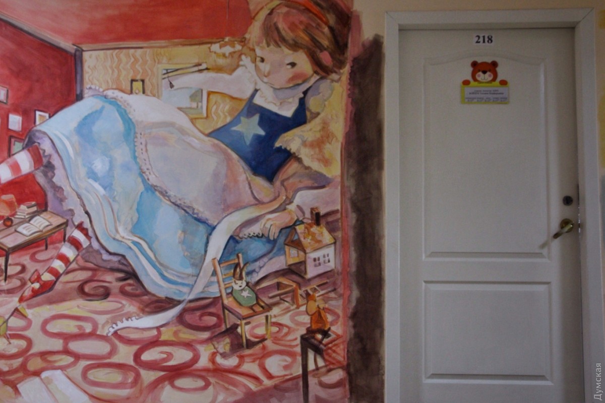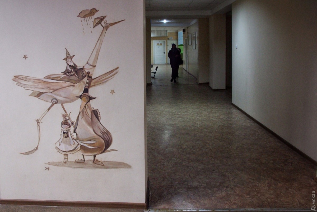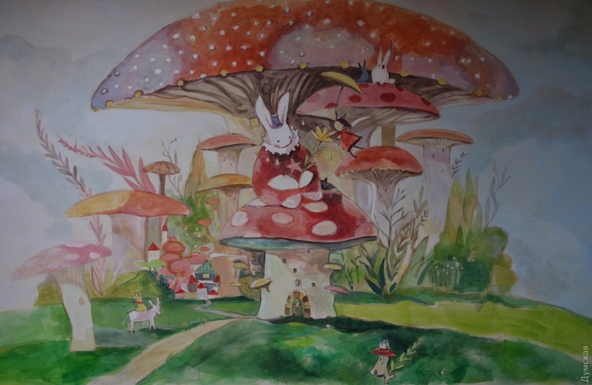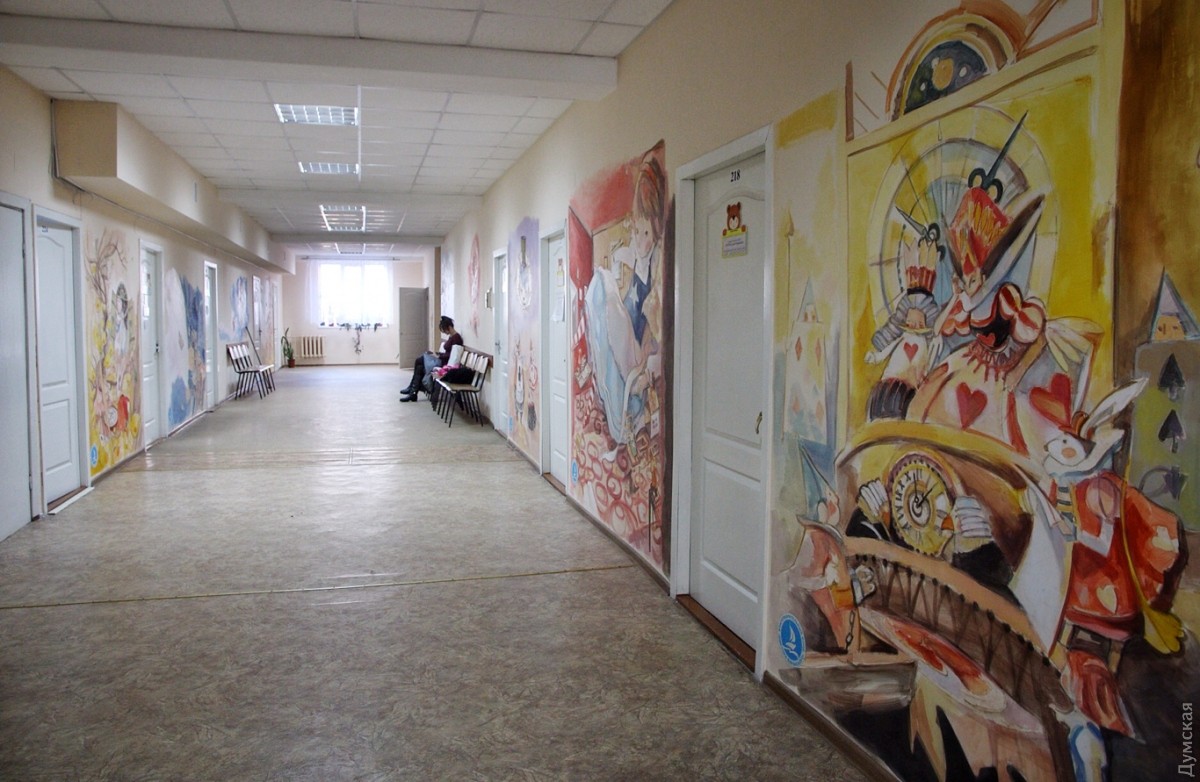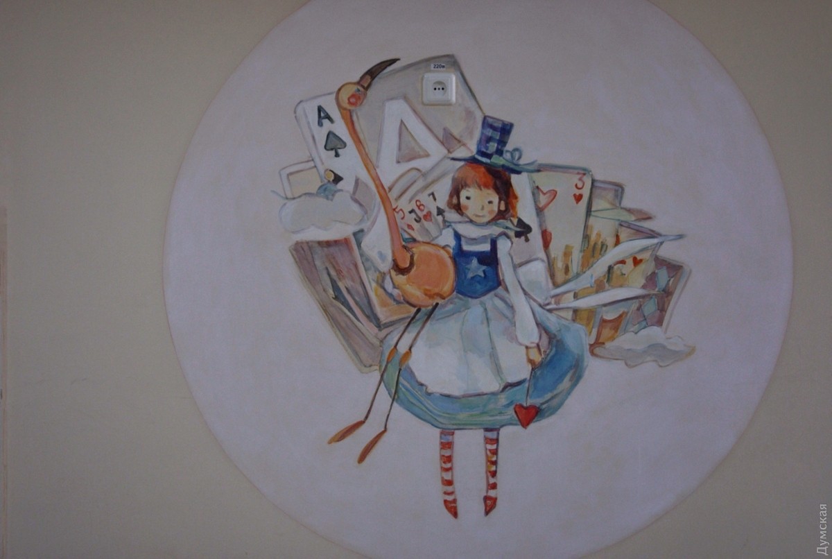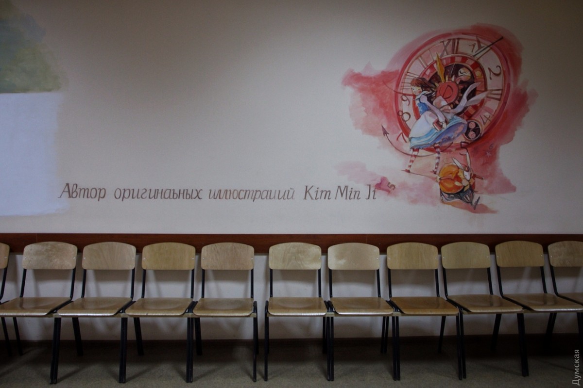 Коридор второго этажа одесской детской поликлиники №4, что на улице Маршала Говорова украсили иллюстрации известной южнокорейской художницы Ким Мин Джи. Художница работает в технике акварельной живописи. Одесские коллеги перерисовали ее работы, но честно указали авторство. Теперь со стен на маленьких пациентов смотрят Алиса, Белый Кролик, Чеширский Кот и другие герои Льюиса Кэрролла. Как рассказала «Думской» главный врач поликлиники Наталья Андриевская, идея разукрасить стены интересными для детей иллюстрациями появилась сразу после ремонта второго этажа. «Это же детская поликлиника, и подобные яркие рисунки отвлекают наших посетителей, улучшают им настроение», — считает врач. Художники работали по выходным и в вечернее веремя, чтобы не отвлекать врачей от работы. По словам Андриевской, тематика иллюстраций — выбор самих художников. СМЕРТЬ РОСІЙСЬКИМ ОКУПАНТАМ! Помітили помилку? Виділяйте слова з помилкою та натискайте control-enter |